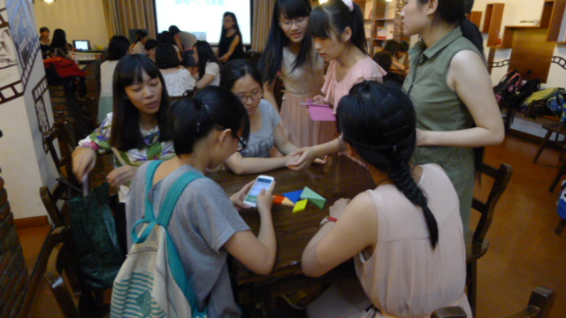 紧接着,就是寓教于乐的团队破冰游戏环节,李磊学长一开始用小游戏告诉大家要学会向自己的团队成员竖起大拇指,学会赞美他人,然后又用一个轻松的小游戏在考察大家反应灵敏程度的同时,也告诉了大家“行百里者半九十”的简单道理,启示同学们学会坚持。在紧接着的七巧板和驿站传书两个游戏中,大家积极参与,反响热烈。