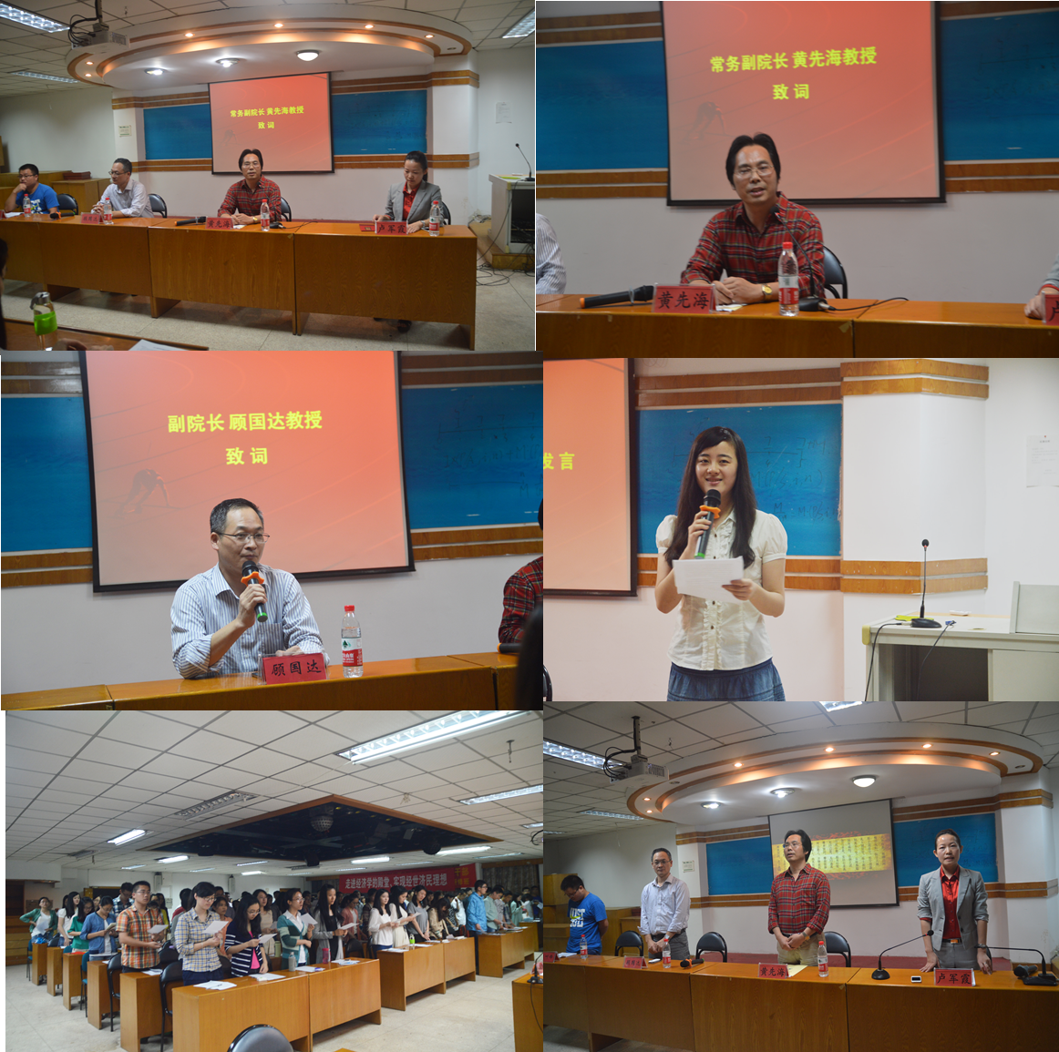 黄先海教授率先向同学们致欢迎词。首先,黄院长明确了威尼斯144777欢迎您在全国乃至世界经济学研究中的重要地位和师生们的杰出成就,让同学们对身为经院一员而倍感自豪。同时,黄院长也强调,浙大经院要培养的是具有“国际视野”和“经世济民”气度的大才。而要实现这一的目标、取得更多的成就和突破,同学们还需要强化两个意识:其一,为坚持勤奋刻苦学习,对学术孜孜以求;其二,要确立规则意识,严格遵守学术规范。而顾国达教授则提出了“自强不息,追求卓越”的八字目标,并且提醒同学们要有“危机感”,不满足于当下取得的成绩,更加努力,勇攀学术高峰。要重视自我的修炼与成长,学会自我激励、自尊自爱、互相学习、自强不息。而优秀教师代表陈叶烽老师,则以风趣幽默的语言与大家分享了他的“学术人生”经历与感悟,启发同学们一定要认真思索“是否真地下定决心要走经济学科研之路”,“我也许不够学术,但我足够认真”,坚持、认真并静心刻苦钻研才能在漫漫学术之路上有所造诣。各位老师不同风格,但都语重心长的谆谆教诲给了同学们颇多的启发,会场不时爆发出雷鸣般的掌声。