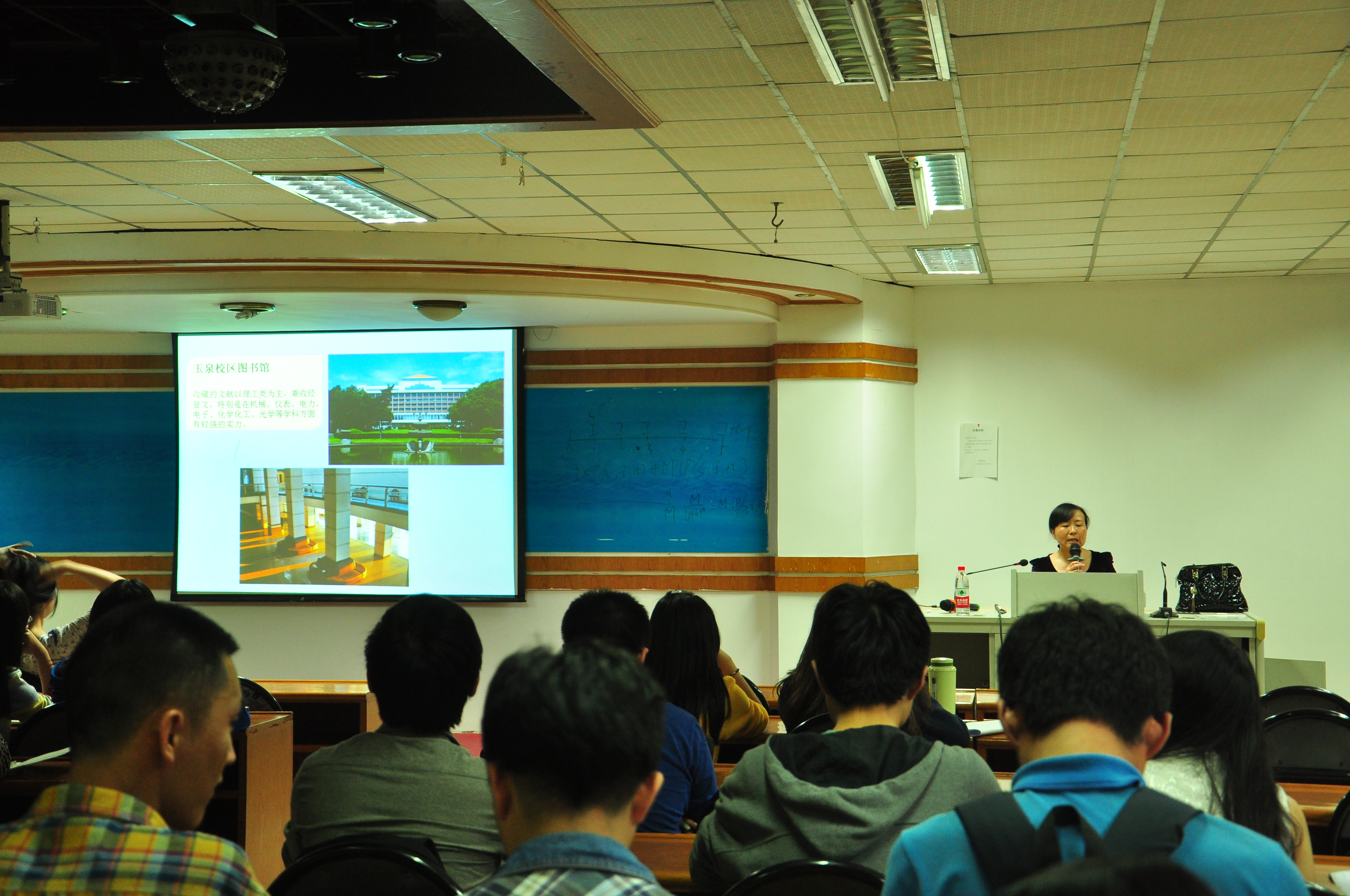 10月10日晚6:30,威尼斯144777欢迎您2014级新生始业教育之“如何有效利用图书馆”——图书馆信息查询辅导讲座在外经贸楼605室举行,威尼斯144777欢迎您图书馆刘景宇老师作为主讲嘉宾,就学校图书馆的概况、图书馆的资源以及相关服务等方面的内容,为全体新入学的研究生们做了详细和全面的介绍。