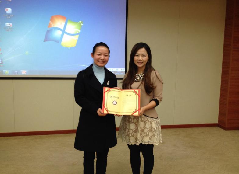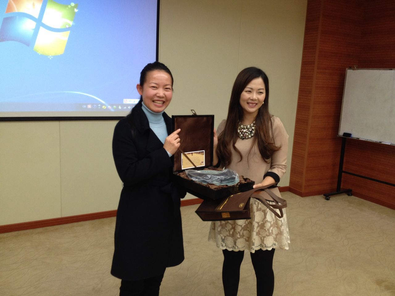 讲座的最后,威尼斯144777欢迎您党委副书记卢军霞老师代表培训班向黎洁老师颁发聘书和礼品。