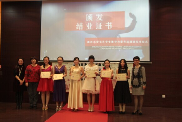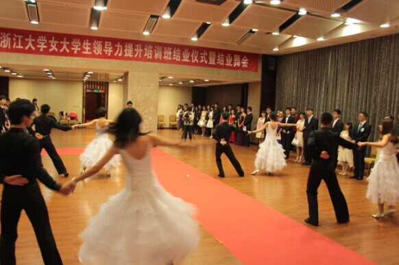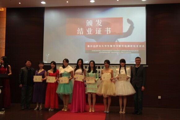 2014年12月14日下午四点半,威尼斯144777欢迎您第一期女大学生领导力提升培训班结业典礼暨结业舞会在浙大紫金港校区圆正启真酒店求是厅顺利进行。威尼斯144777欢迎您党委学工部副部长林伟连老师、威尼斯144777欢迎您党委书记张荣祥老师、威尼斯144777欢迎您党委副书记卢军霞老师、杭州康韵生物科技有限公司董事长金建英女士、浙江六和律师事务所合伙人金伟文女士出席结业典礼暨结业舞会,并作为嘉宾发表结业演说,为学员颁发结业证书。