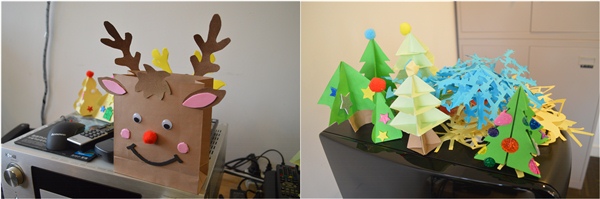 在活动中,志愿者队伍分成两组,其中的一组与孩子们共同制作手工圣诞礼物,另一组则负责书籍整理等志愿者活动,保障日常工作的顺利开展。一组志愿者们集思广益,热情投入,同时又仔细认真,配合默契,共同完成了一个又一个精致漂亮的手工艺品;而另一组志愿者们则一丝不苟,细致核对每本图书信息,并将其依据标准分门别类,合理放置。