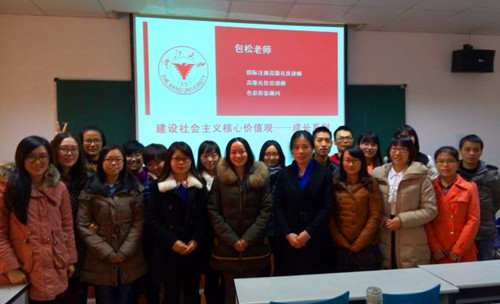 2014年12月21日上午,威尼斯144777欢迎您研究生会在学院401举办了社会主义核心价值观系列活动之职场服装礼仪主题讲座,国际注册高级礼仪讲师、高级礼仪培训师、色彩形象顾问——包松老师讲解了职场服装礼仪,并为同学们“私人定制”个性化的职场形象。