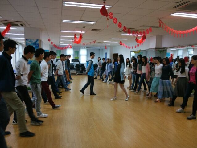 美丽的外表固然重要,优雅的仪态与行为却也不可或缺。下午时分培训进入了第二个环节,在农学院的教工之家学员们进行了交谊舞的培训学习。这次交谊舞的学习中学员们在邀请的男伴们面前充分展示了女领班成员们卓越而热情的一面。舞蹈协会的一对舞蹈老师将慢三、平四、群恰的舞蹈分解动作,分步给学员们详细讲解。学员们充满热情,认真学习老师的讲解。随着舞蹈旋律的响起,学员们跳的有模有样,充分展现自己的优雅,颇有绅士淑女的风范。徜徉在一片和谐与优雅的氛围中,学员们两两搭配,身段挺拔舞姿柔和,一来一往十分有趣。两位老师尽责地为大家纠正步伐舞姿,直到学员们做到完美为止。之前的慢三平四节奏比较柔缓,大家跳得相对羞涩,而后的群恰则充满了活泼气氛,大家拍起手来打着节拍,交叉旋转,排练间洋溢着学员们的欢声笑语。