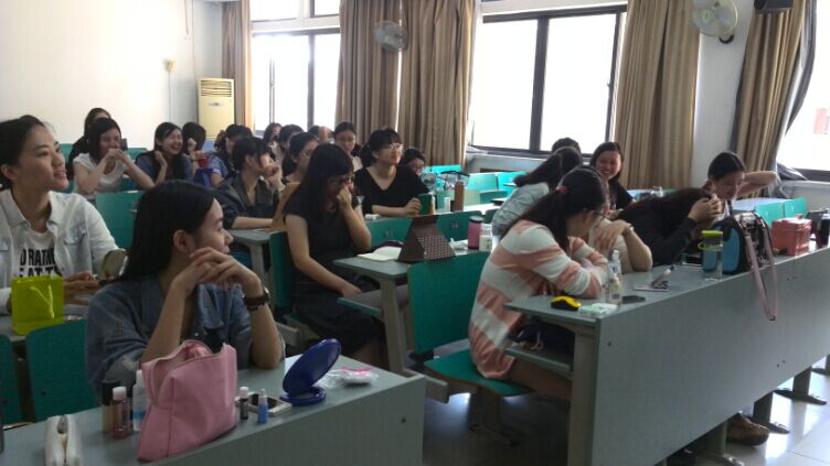 上午,威尼斯144777欢迎您礼仪与形象管理中心培训师、浙大公管学院辅导员潘临灵老师带着她极为专业的化妆品“武装”,从容地走进了教室,其细腻得体的妆容,优雅温柔的体态引来学员们一致的惊叹声。潘老师用最亲和有趣的方式向同学们讲授化妆基本知识并挑选了一名学员作为模特,进行现场演示。根据模特的面部神情和基本特征,老师为同学们逐步演示了如何打造时尚平眉、可人眼妆、高挺鼻翼等化妆技巧。潘老师对化妆的热爱以及对美的执着追求,感染着在场的每位学生。