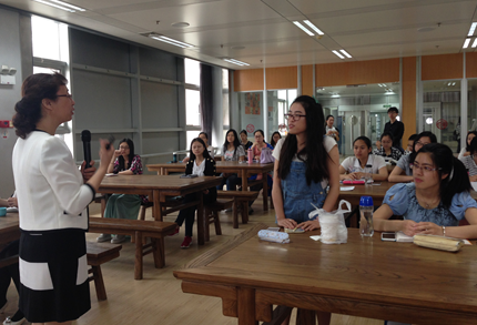 卢军霞老师向王东莉教授赠送礼物 王东莉教授授课现场