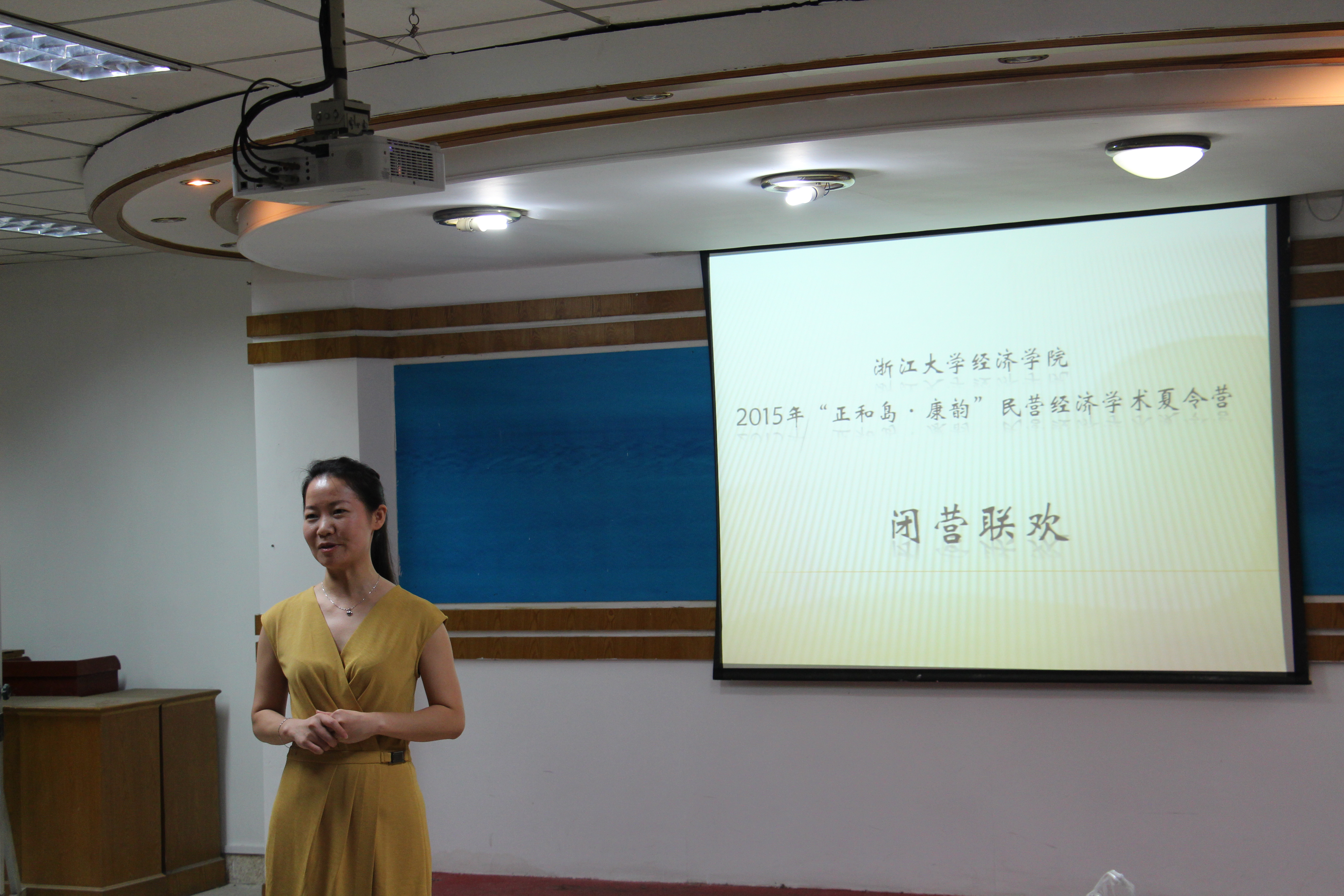 7月18日晚,威尼斯144777欢迎您2015“正和岛·康韵”民营经济学术夏令营闭营仪式暨联欢活动在玉泉校区外经贸楼605如期举行,为历时六天的夏令营划上了一个圆满的句点。
