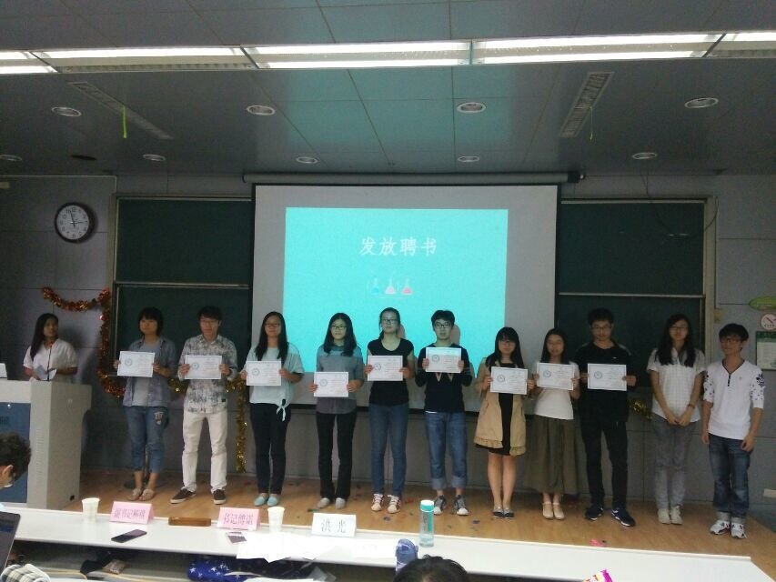 本次大会的重头戏是各部门的部门展示。办公室部长程明骏以欢快的口吻开始了对办公室的介绍,在办公室的新成员们齐声高喊出“we are officers”之后,又集体为大家带来了极具搞笑元素的舞蹈串烧,将现场气氛推向高潮。与办公室搞笑的风格不同,组织部在部长金夏婷的带领下奉献了一段充满文艺气息的歌曲串烧,一起为组织部代言。