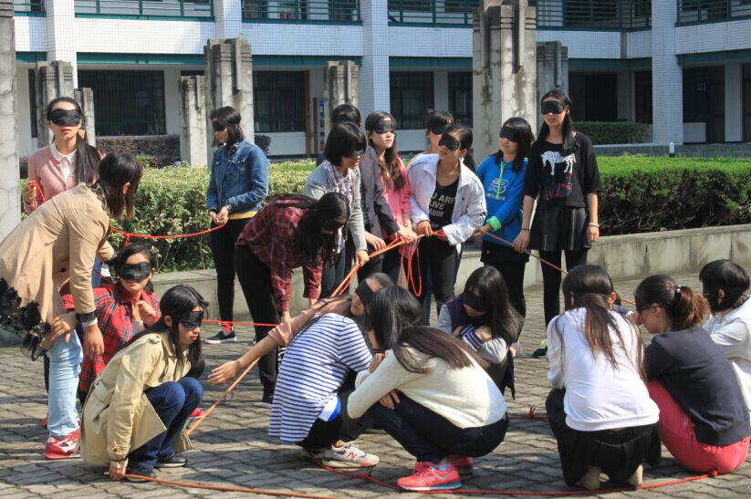 整个素拓持续一天,每一个活动都兼有挑战性及其背后的深刻涵义。首先,整个班级在教练的指导下分成了两个团队,分别为“向阳队”与“赤焰队”。在学员们参与的素质拓展活动中,“万里长城”要求所有学员们围成圈,每个人躺在身后人的怀里形成稳定的结构并坚持五秒;“我们是最棒的”要求两队学员们商讨对策将一段有规律的语段在最短时间内齐声读完;“山洞搭房”中,学员们的双眼被蒙上,并被分为三组带离,要求在规定时间内找到绳索并汇集起来,以三角形、正方形、圆形拼接成一座房屋;“极速60秒”挑战中,两组学员被要求分别在每轮60秒共三轮挑战中通过30张图片猜测数字并依顺序由一人递交,其他人不得触碰卡片。