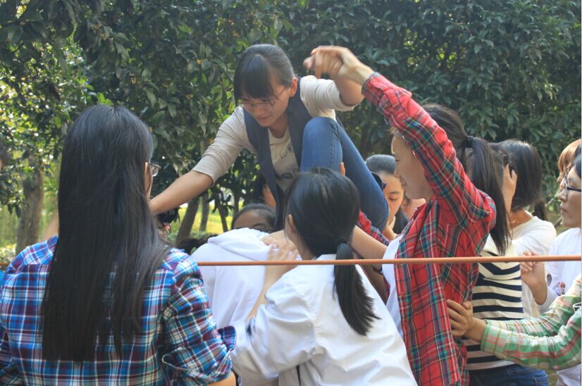 而最后一项最为艰巨,却也最是提升了整个班级凝聚力的“抱团打天下”挑战,则要求学员们不借助任何外力、仅依靠团队自身力量来翻越高达约1.4米的绳索,而绳索一旦被触碰,挑战将从头开始。从怀疑其可行性,到在一声声呐喊中奋勇前行,整个团队以强大的意志力、紧密的合作以及无私的奉献精神互助相携,最终所有学员均翻越成功,圆满完成挑战。