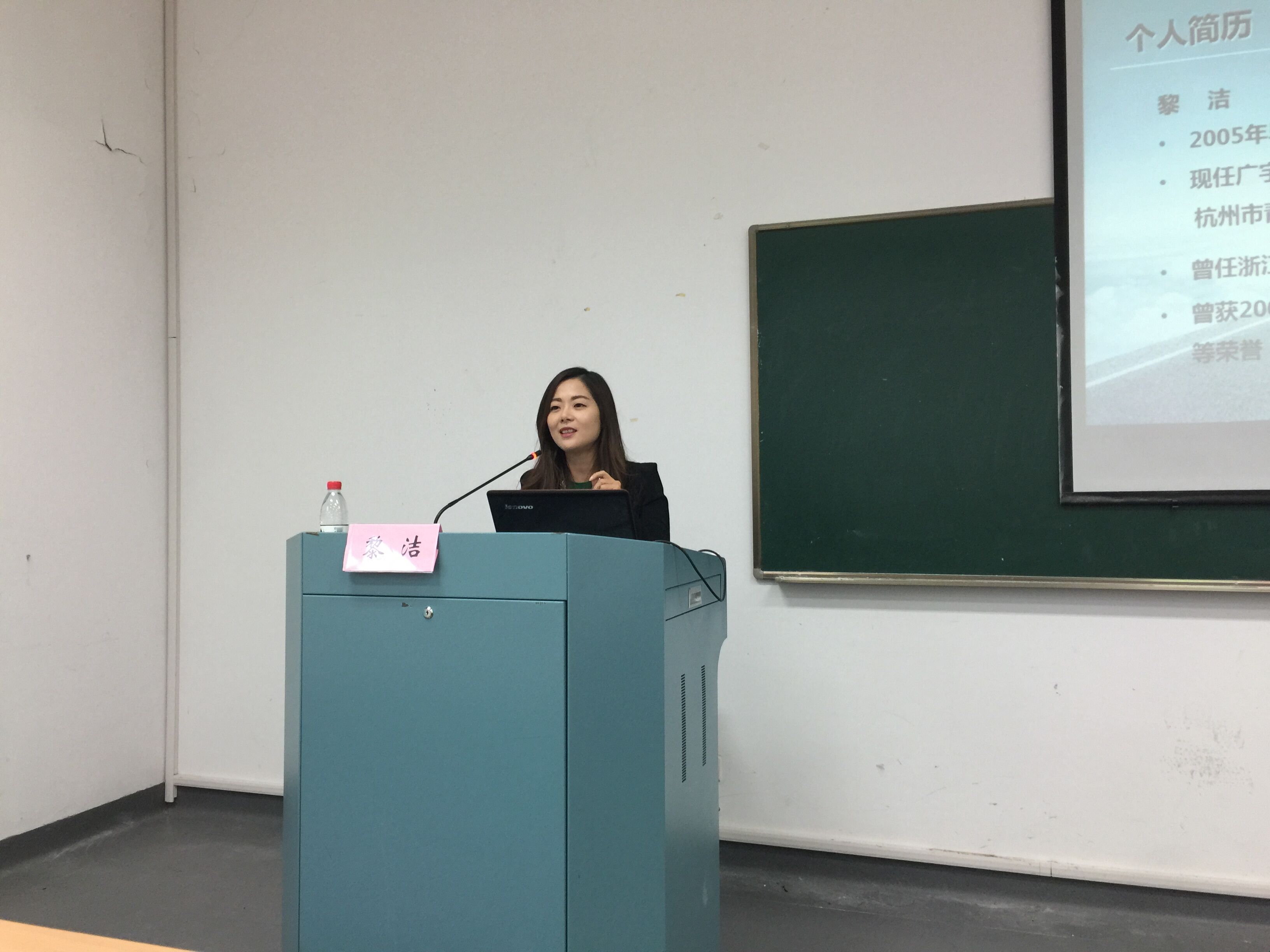 干练的气质,开门见山的讲课方式,浙江六合律师事务所合伙人金伟文老师用她的个人魅力与行事风格向学员们展现了一个法律人的精神气度。首先,金老师向学员们介绍了什么是法律思维,并着重描述了法律思维的三个特点:客观、逻辑和严谨。那么,如何用法律思维来思考问题呢?金老师做出了详细的解答,其中最重要的一点就是理清法律关系,然后在这基础上明确权利和义务。通过金老师的讲课,在座学员们对法律范畴和道德范畴的界定有了更深刻的认识。在课程的最后金老师对学员们提出了这样的期望:“希望你们说话做事要观点明确,思路清晰,遇事冷静,培养自己的法律意识。”