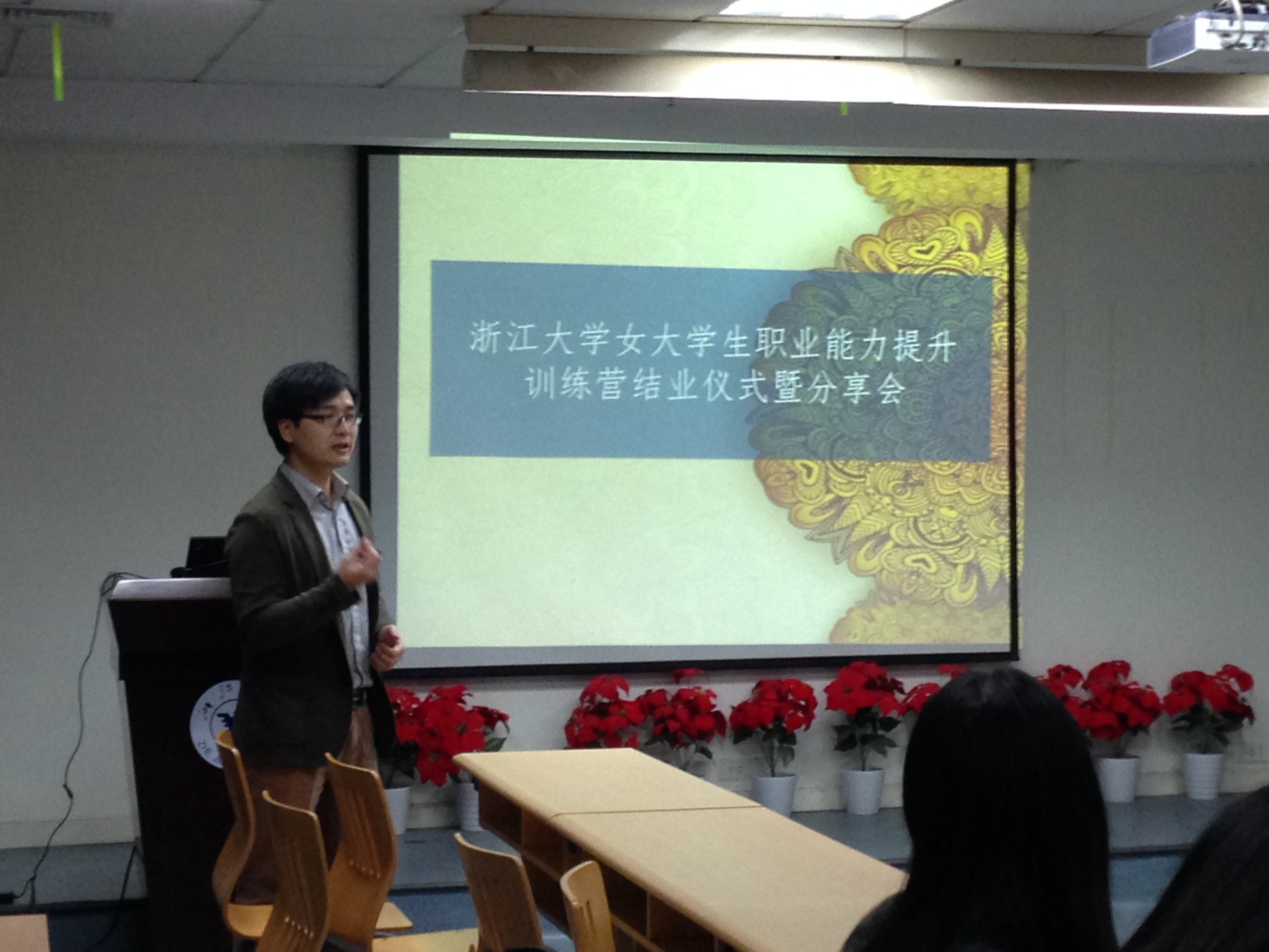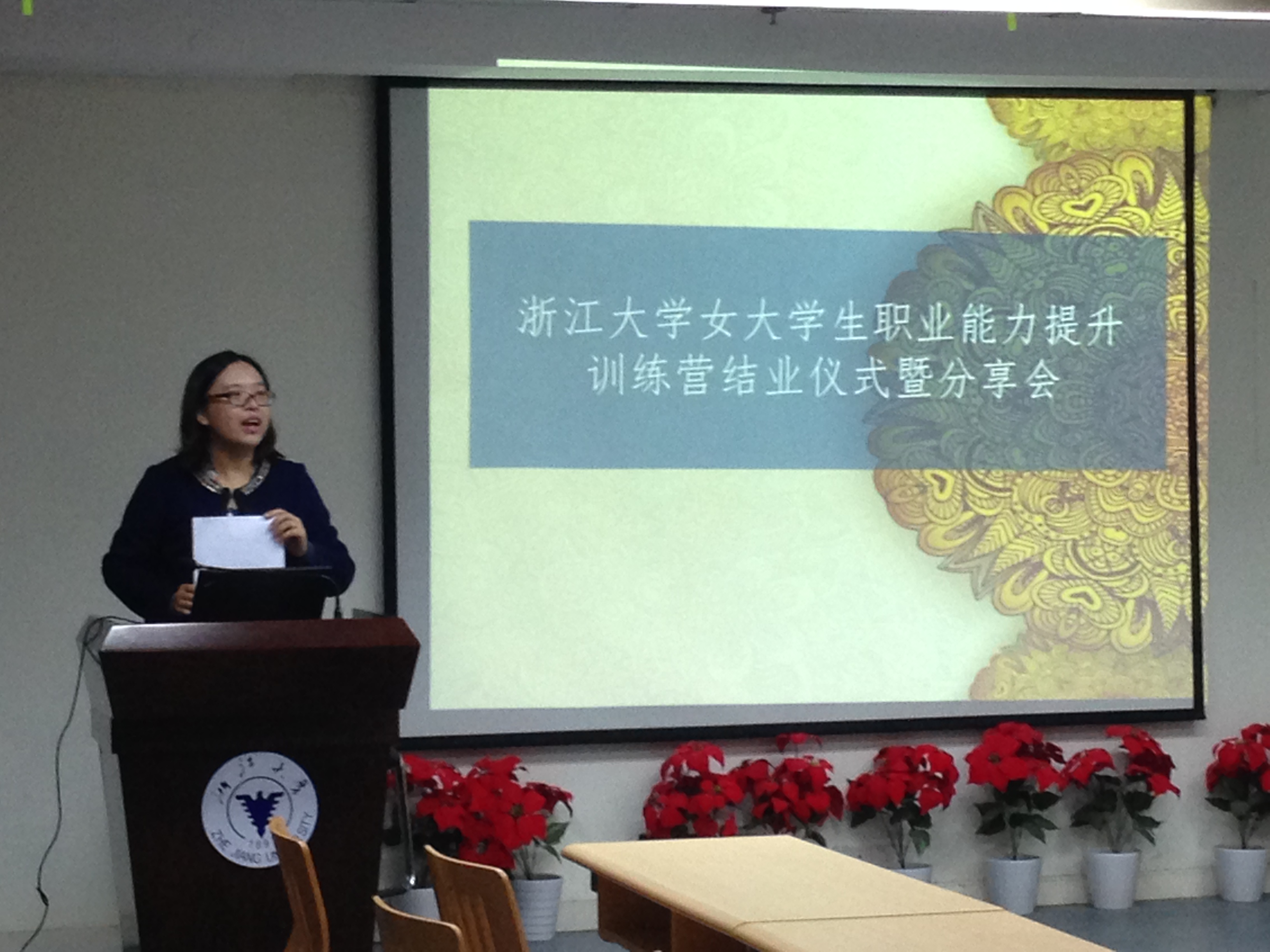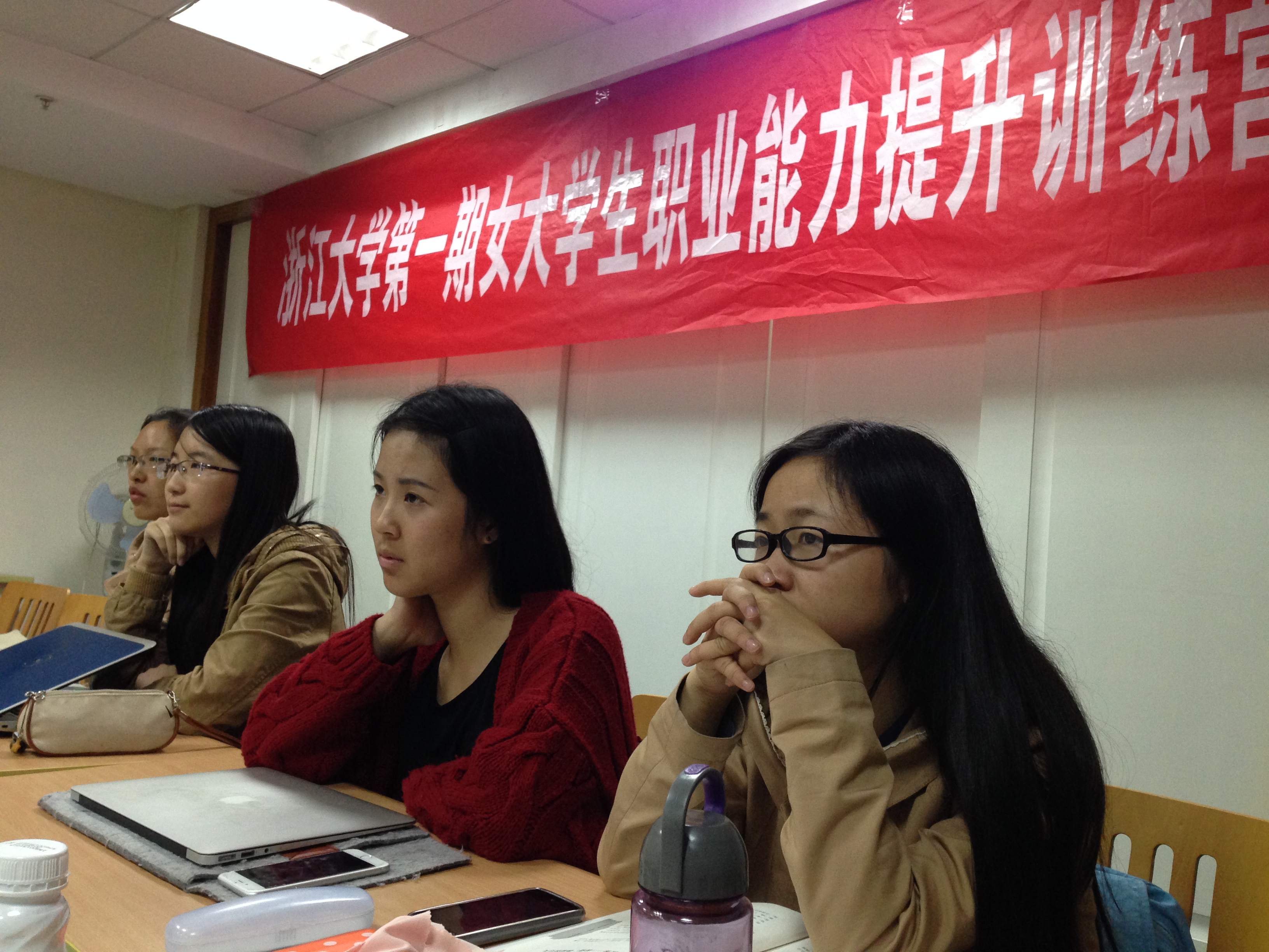 2015年11月1日晚六点半,雨后的杭城夜晚已经带着丝丝寒意,但紫金港校区小剧场201室却灯光明亮,温暖依旧,威尼斯144777欢迎您第一期女大学生职业能力提升训练营(以下简称“训练营”)结业仪式暨分享会在这里如期召开。威尼斯144777欢迎您辅导员王晓、杨波和洪光三位老师以及训练营的学员们参加了此次活动,活动由杨波老师主持。