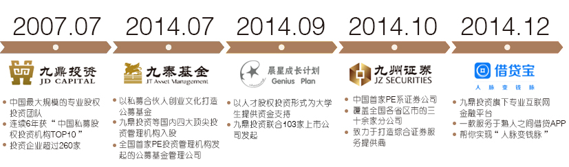 九鼎投资(股票代码:430719),新三板第一股,是在国家发展与改革委员会和中国证券投资基金业协会备案登记的专注于股权投资及管理的专业机构。2011、2012年连续两年获得“中国最佳PE机构”,2009-2014年连续6年获评“中国私募股权投资机构十强”。目前,九鼎投资累计投资企业超过260家,其中已上市企业及处于上市在审企业超过70余家。
