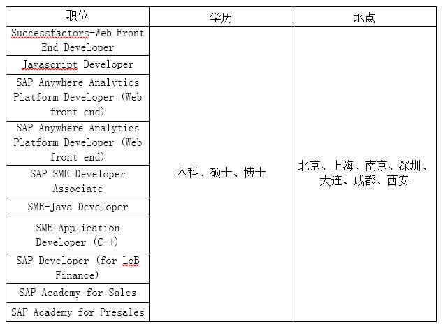 [招聘信息]思爱普(SAP)2016校园招聘简章