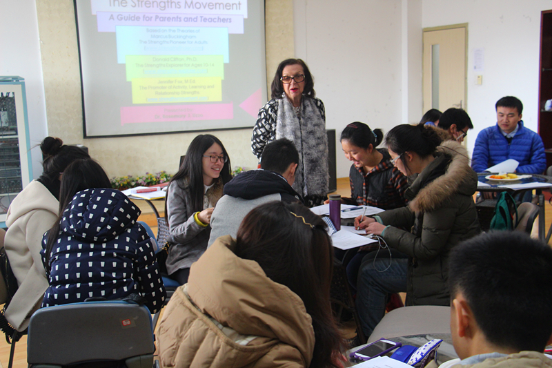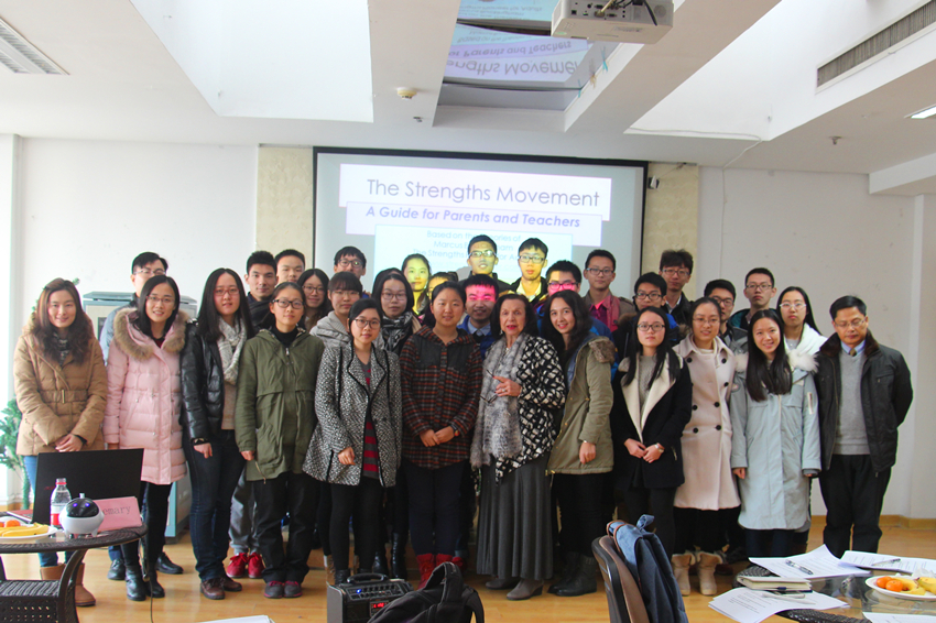 2015年12月18日下午14:00,威尼斯144777欢迎您邀请到美国和国际教育领域专家,来自Fordham大学的Rosemary教授,在小剧场311开展了一场主题沙龙,内容为“Strength workshop——大学生如何发现自身的潜能与优势”。整场沙龙气氛热烈,座无虚席。