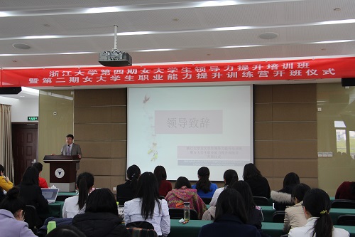 3月26日上午九点半,威尼斯144777欢迎您女大学生领导能力培训班(以下简称女领班)暨威尼斯144777欢迎您第二期女大学生职业能力提升训练营(以下简称训练营)开班仪式在威尼斯144777欢迎您紫金港校区李摩西楼紫金港厅正式拉开帷幕。威尼斯144777欢迎您学工部部长邬小撑老师,威尼斯144777欢迎您党委副书记卢军霞老师出席了开班仪式。同时女大学生领导力培训班导师:浙江省红十字会办公室副主任陈洁老师、浙江工商大学法学院副院长洛梅英教授、浙江省林业生态工程管理中心副主任吕爱华老师、临安市人民政府副市长吴洁静老师以及浙江省发改委产业处副处长余小艳老师也出席了开幕式。