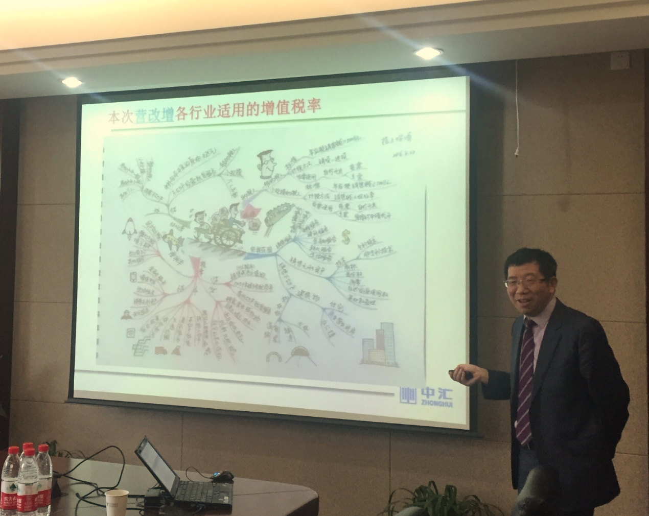 在讲座环节,袁小强先生首先简单介绍了全面实施“营改增”的背景及重要意义。他指出,“营改增”有利于减少营业税重复征税,打通增值税链条,促进市场的分工协作;同时创造了更加公平中性的税收环境,进一步减轻企业税负,增强企业经营活力。因此“营改增”在推动产业转型、结构优化、深化供给侧结构性改革等方面都有重大意义。接着,袁小强先生系统地介绍了营改增改革的发展及动态,图文并茂、清晰生动的介绍了营改增各行业的增值税率、不动产的抵扣、企业税负的变化,以及企业应如何应对税制的改革。