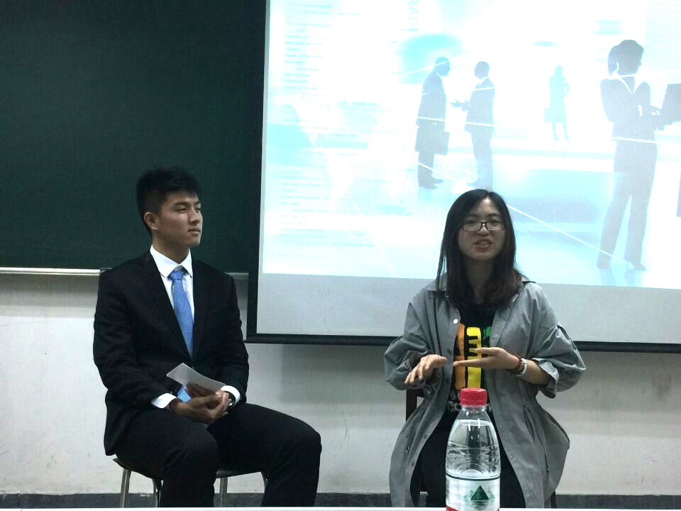 首先进行分享的是金融学专业的江颖同学,即将入职于广发基金。在分享会中,她鼓励学弟学妹积极参与投资,从专业角度出发简要地分析了公募基金行业目前的发展状况与未来前景,为有意愿本科毕业后直接就业的同学指明一条可供选择的道路。同时,江颖也认真地回答了在座同学提出的各类问题,幽默风趣地与同学们分享她的大学生活。