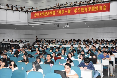 在本次报告会上,段治文老师用其独特的语言风格与深厚的文学功底,深入浅出地为全院学生党员讲解了以习近平为总书记的党中央治国理政的新思想、新理念和新战略,让在座党员提升党性修养、扩大视野、关注国家民族未来命运,以天下为己任,为把自己培养为一位具有国际视野的未来领导者而努力。集中学习结束后,各支部纷纷展开了热烈讨论,就学习内容交流体会。