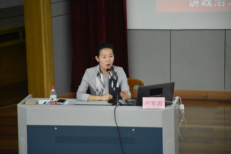 报告会上,卢军霞老师首先全面解读了“两学一做”学习教育的精神内涵,精辟阐述了学习教育的对象时间、总体要求、具体内容、主要措施和组织领导安排。卢老师指出,“四讲四有”即讲政治、有信念,讲规矩、有纪律,讲道德、有品行,讲奉献、有作为,学生党员要时刻铭记党员身份,积极践行“四讲四有”标准,把以学促做、知行合一作为学习生活的着眼点和落脚点,充分发挥大学生党员的先锋模范作用。她还强调,学生党员要正确把握学习要求,自觉将党章党规与习近平总书记系列讲话贯通起来学习,统一起来领会,在学习系列讲话中加深对党章党规的理解,在学习党章党规中深刻领悟系列讲话的基本精神。