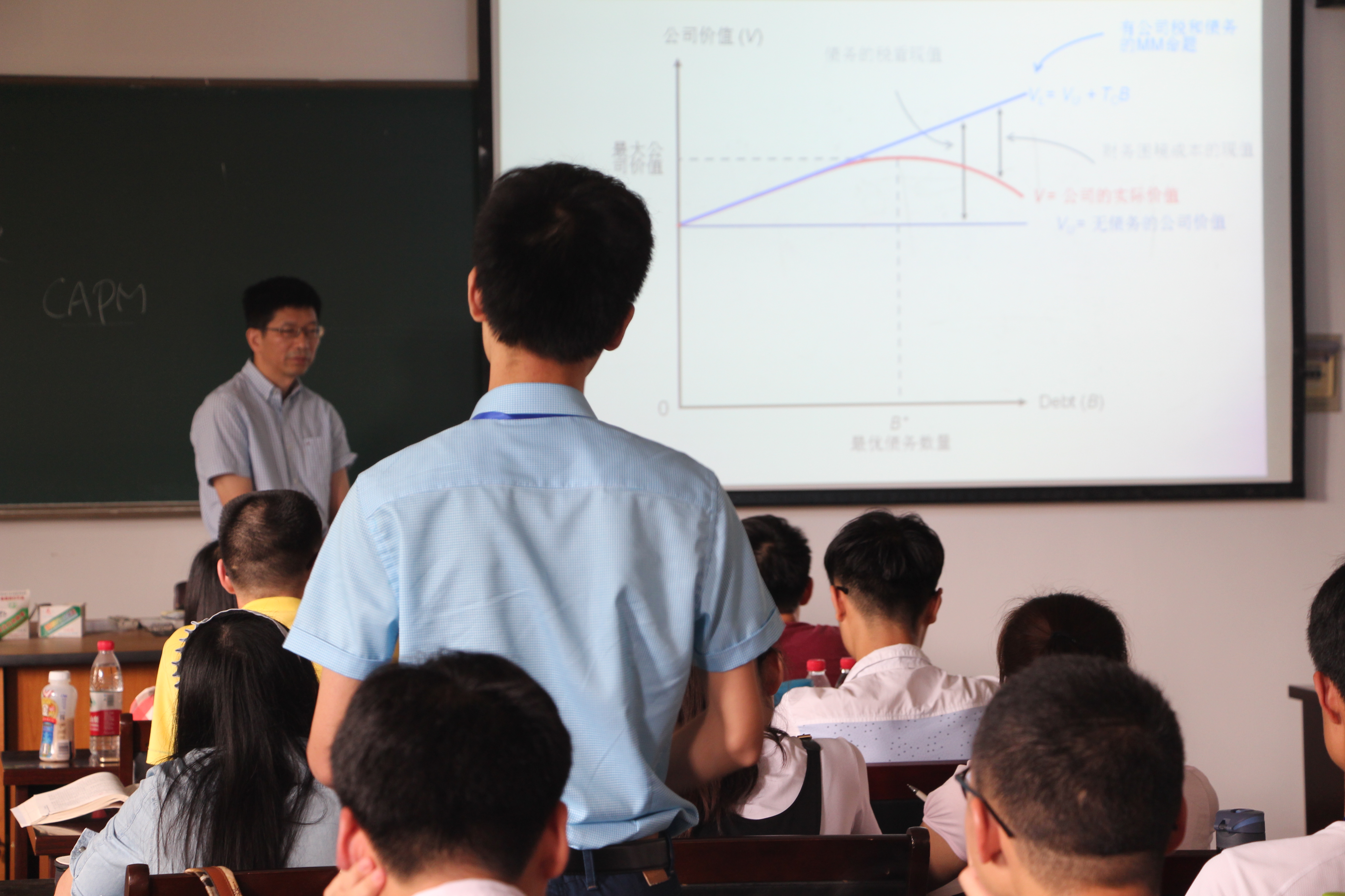 下午的专题由威尼斯144777欢迎您副院长杨柳勇老师主持,他从万科宝能事件展开,围绕公司金融资产和负债,为大家搭建了公司金融的理论框架。杨老师不拘泥于框架,话语状似天马行空,亦可感受学习到他高屋建瓴的视角和过来人的经验。老师设计的针对公司金融的一些思考题引发了同学们的争相竞答,同学们的回答也得到了杨老师的肯定。整场的气氛非常活跃,同学们认真聆听,和自己所学相互辉映,收获颇丰。