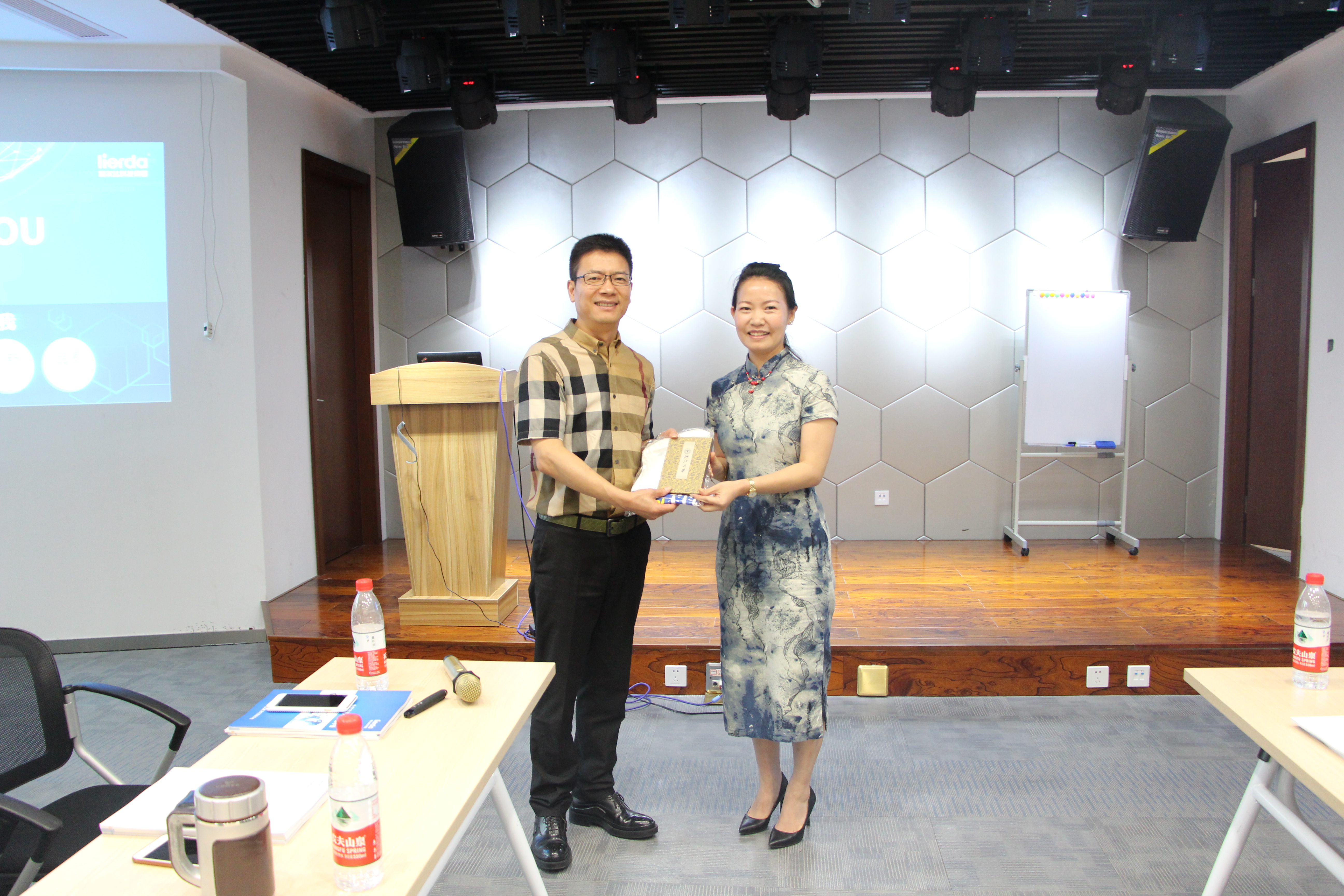 之后,利尔达科技集团有限公司的叶文光董事长在多媒体报告厅为我们作了精彩的报告。叶董从个人经历出发,讲述了自己的创业经历,并强调了不同时期追随不同潮流的重要性。随后便由点及面,从整个浙江的战略布局出发,直击浙江民营经济的特点,简练而精准。报告的最后,叶董还就“什么是产业结构升级”这一议题与大家进行了热烈的互动,表达了对营员们勇于质疑、积极思考的精神的肯定与鼓励,以及对民营经济和经济人才共同进步的殷切期望。活动结束前,威尼斯144777欢迎您党委副书记卢军霞老师对利尔达科技集团表示了感谢,同时送上了“康韵”民营经济学术夏令营文化衫留作纪念。