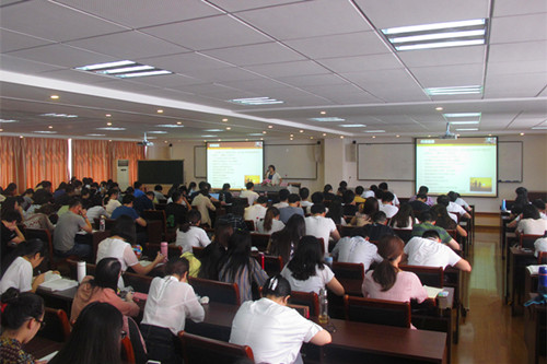 刘老师首先引经据典,阐述了心理健康所应该具备的条件以及心理健康的标准,并详细介绍了有关心理咨询与调节的相关问题,为新生普及了心理健康的基础知识。刘老师认为人的心理问题是普遍存在的现象,还结合她自身的工作实践,深入剖析了读研期间的心理成长过程,并引导新生去认识过渡转化期,其间她还借助一个“判断题”活跃了整个报告会场的气氛,得到了新生们的积极反馈和回应。刘老师指出,在读研期间,新生们应该关注自己的身体,保持良好的生活习惯,而且要处理好与同辈、教职人员以及家人之间的关系,为自身学习和生活创造有利的环境。