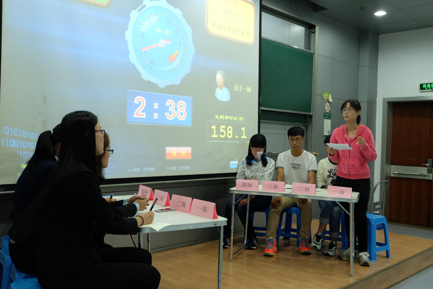 辩论场上双方以“科技让生活更复杂还是更简单”为辩题,展开了激烈的辩论。科技是一把双刃剑,它在解决了人类文明发展过程中的许多问题的同时,却又创造出来许多此前所没有的问题。而对于这样一个论题,比赛双方都各自有着精彩的表现。