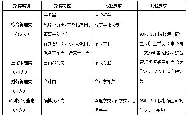 一、管培生招聘岗位说明及招聘计划