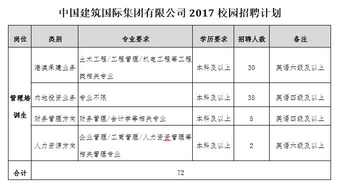 中国建筑国际集团二〇一七“海之子”校园招聘网站:http://job.csci.com.hk。