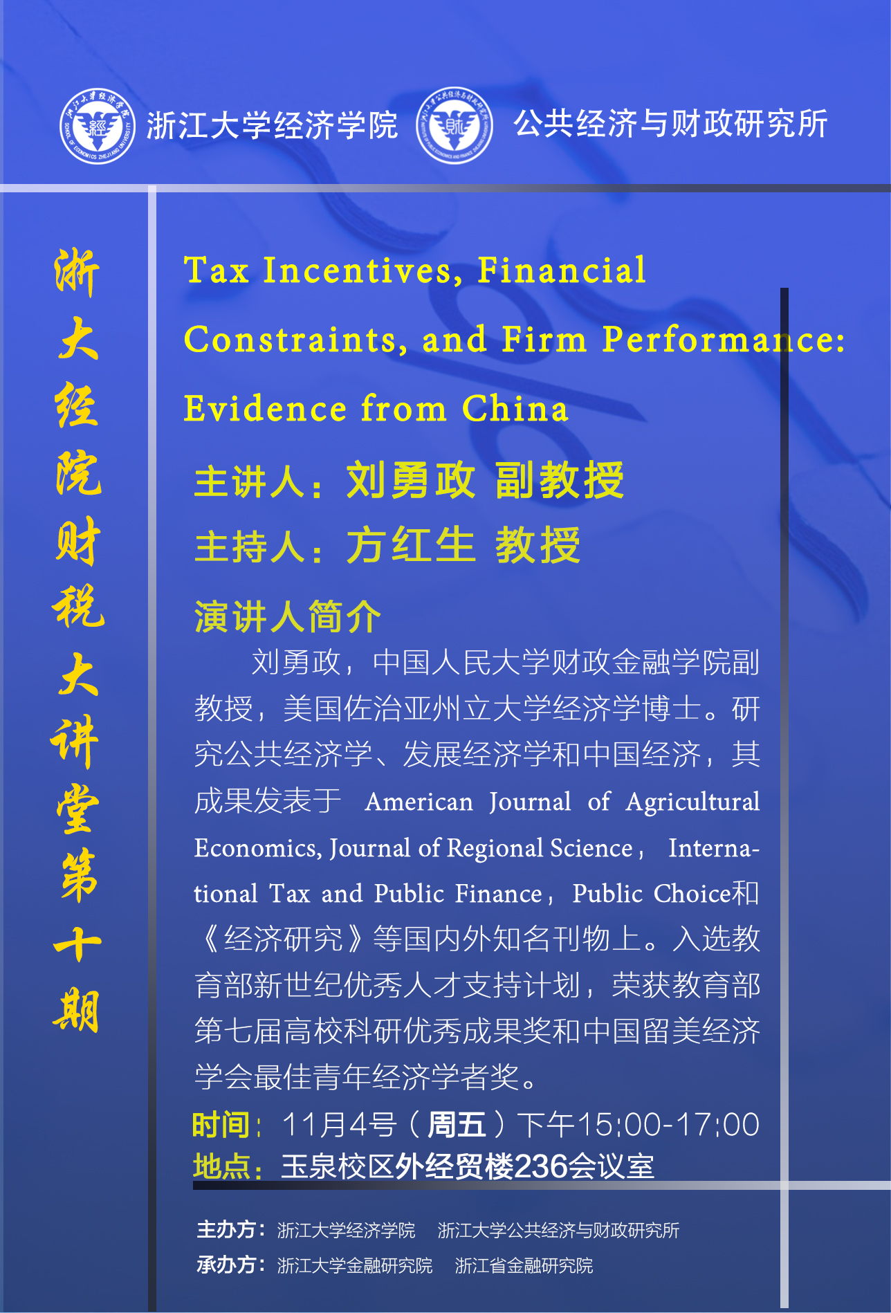 浙大经院财税大讲堂第十期预告