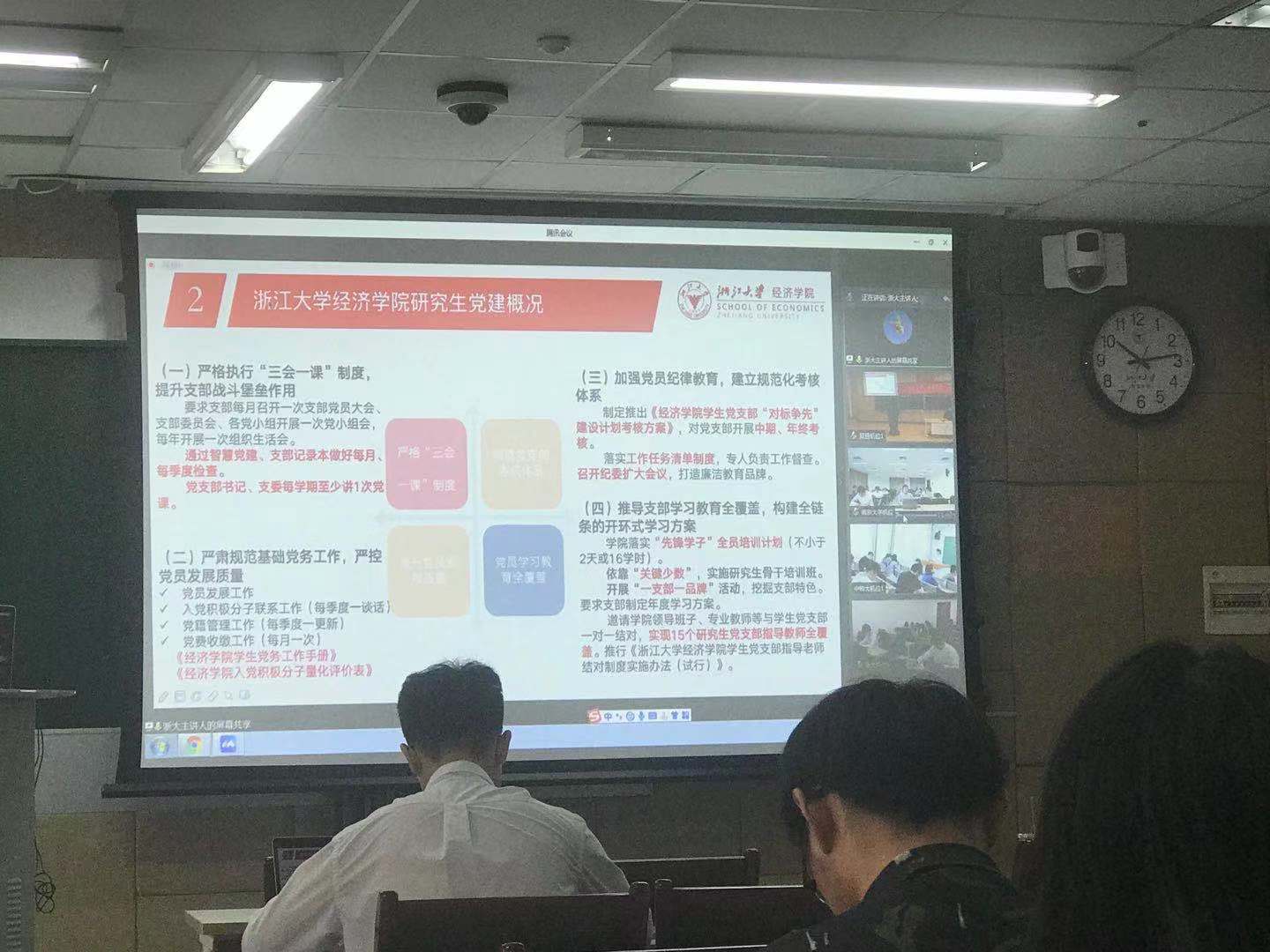 威尼斯144777欢迎您研究生党总支纪检委员、2020级博士生党支部书记虞柳明作为学院代表,以威尼斯144777欢迎您的红色基因作为开篇,着重介绍了威尼斯144777欢迎您研究生的党建概况、基本工作及特色项目。他说:“我们要以研究生党建为龙头,以理论学习为中心,以实践历练为路径,通过理论与实践相结合、互助学习与教学相长相融合的方式,扎实党员骨干的党性修养,进一步发挥青年党员骨干的使命担当和先锋示范引领作用。”