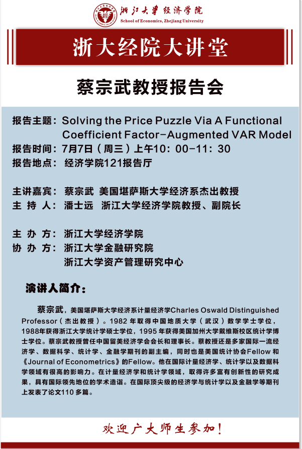 报告主题:Solving the Price Puzzle Via A Functional Coefficient Factor-Augmented VAR Model
