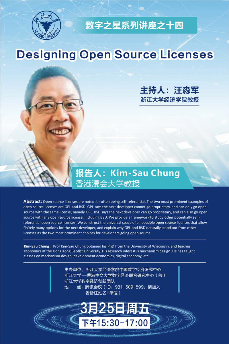 [数字之星系列讲座之十四]Kim-Sau Chung:Designing Open Source Licenses