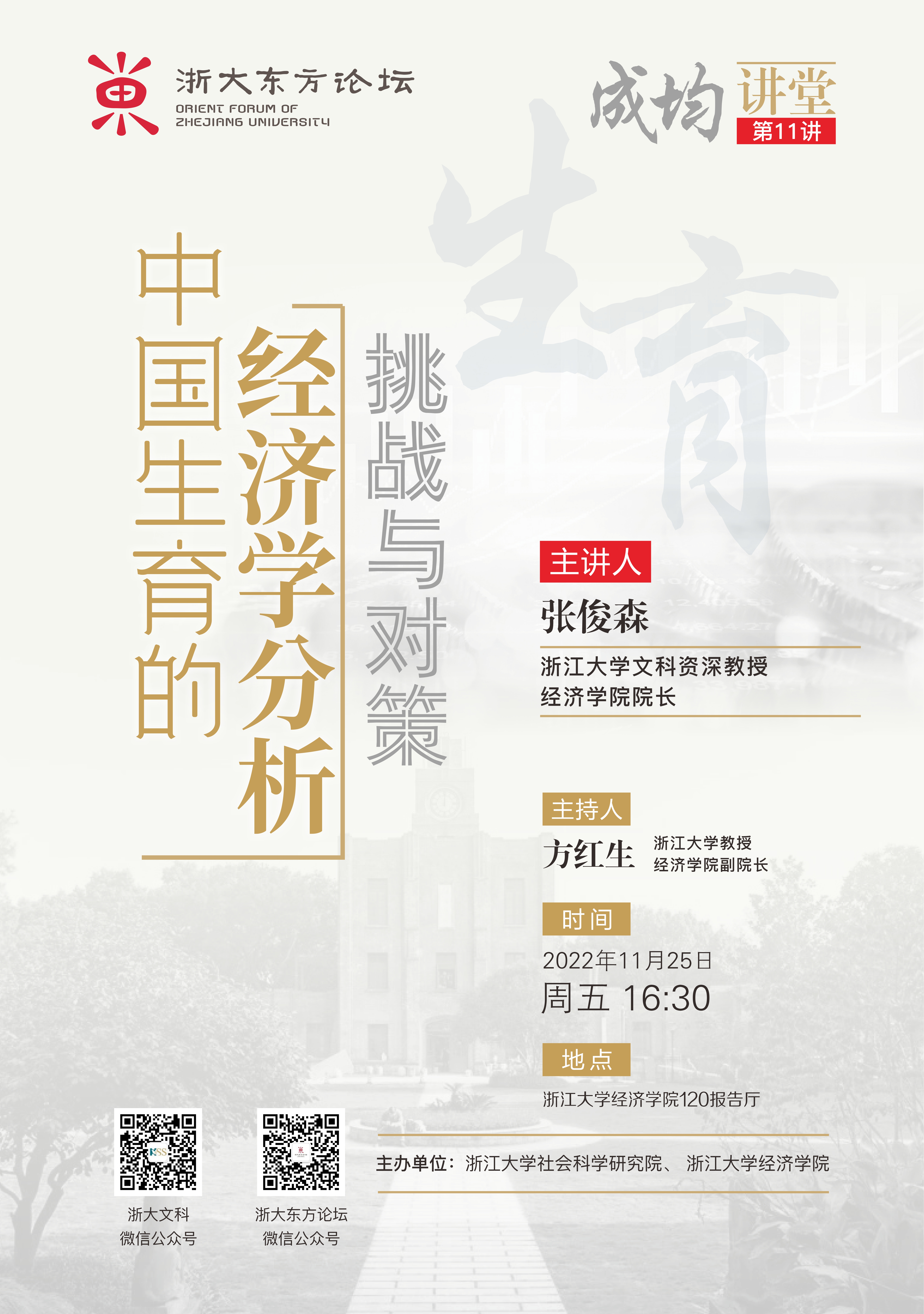 “浙大东方论坛·成均讲堂”第11讲 中国生育的经济学分析:挑战与对策