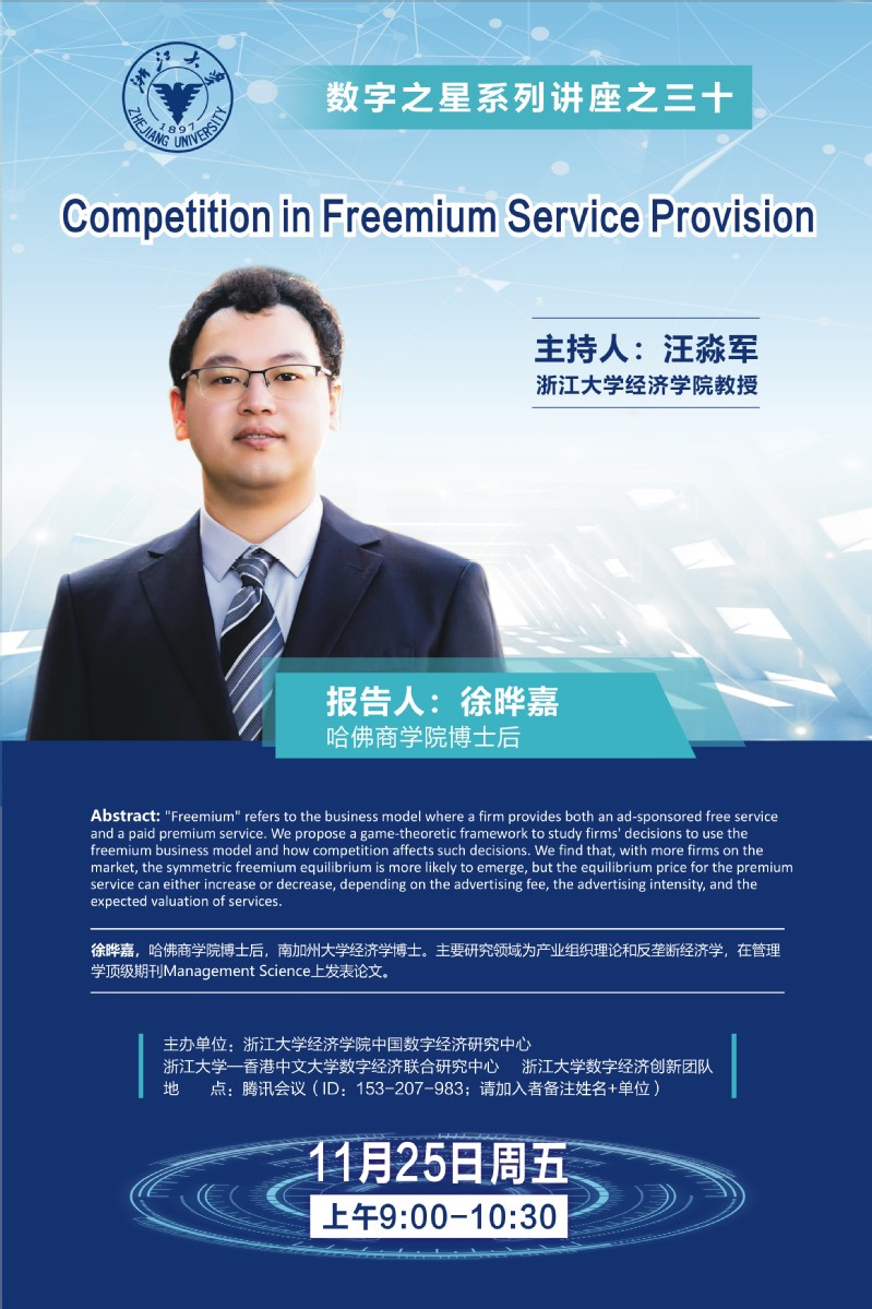 [数字之星系列讲座之三十]徐晔嘉:Competition in Freemium Service Provision