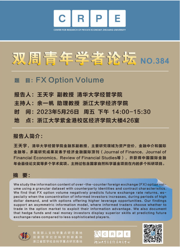 CRPE双周青年学者论坛NO.384 报告人:王天宇