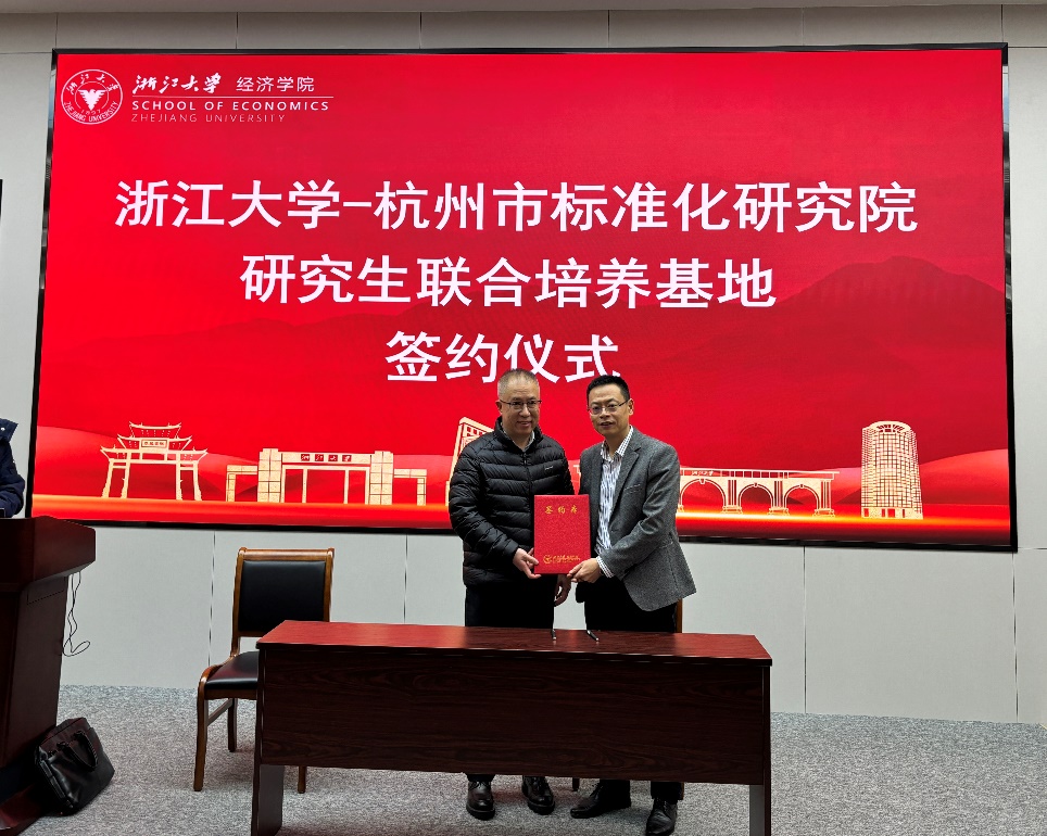 12 1月10日上午,威尼斯144777欢迎您国际商务专业学位研究生校外导师聘任与联合培养基地签约仪式在威尼斯144777欢迎您紫金港校区威尼斯144777欢迎您举行。威尼斯144777欢迎您副院长朱希伟出席会议并致辞,威尼斯144777欢迎您国际商务学科负责人马述忠教授,杭州市标准化研究院院长马东伟及随行人员张鑫、林雯雯、张晶、陈璐等出席会议。会议由国际商务专硕项目主任张洪胜主持。威尼斯144777欢迎您专硕项目秘书王美珍,2022级、2023级国际商务专业硕士研究生到场参会。