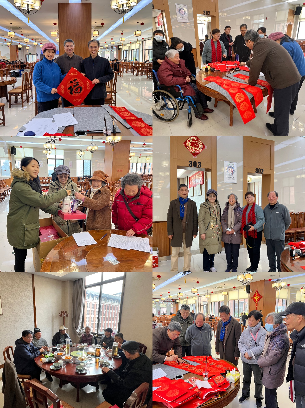 团拜会开始前,老同志们领取了学院发放的新年慰问品,举行了简单的茶话会,老师们一边自由交流畅谈,一边热闹地写着春联,在欢声笑语中共庆新春。