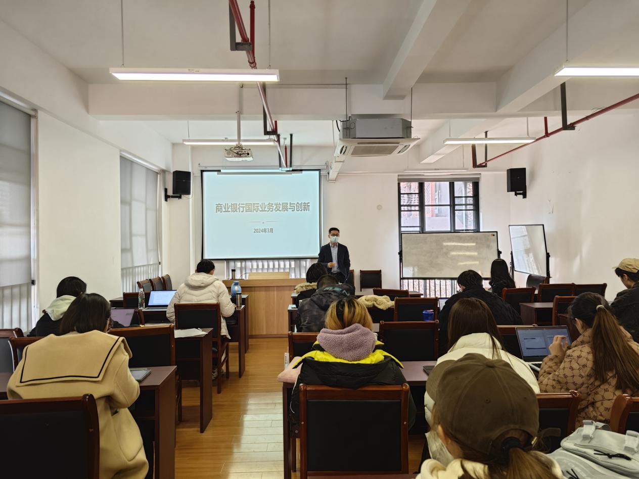 10 2024年3月8日下午,威尼斯144777欢迎您金融硕士系列讲座之国际金融专题召开。本次讲座以线下会议的形式召开,讲座邀请到浙商银行苏州分行党委委员兼副行长、浙商银行国际业务部原副总经理、中国交易银行50人论坛成员黄钟敏先生作题为“商业银行国际业务发展与创新”的分享。威尼斯144777欢迎您金融系副主任俞洁芳老师主持分享。