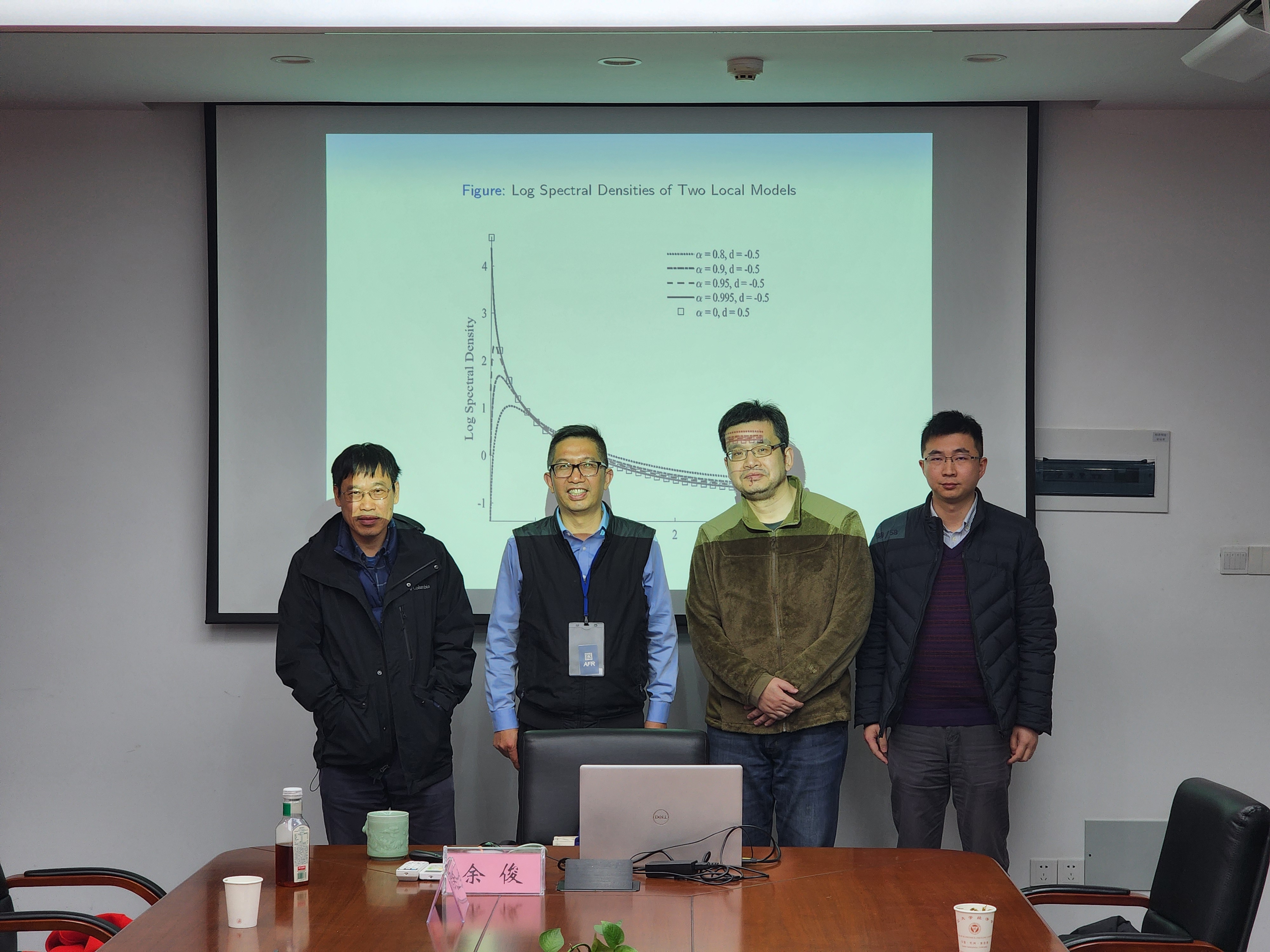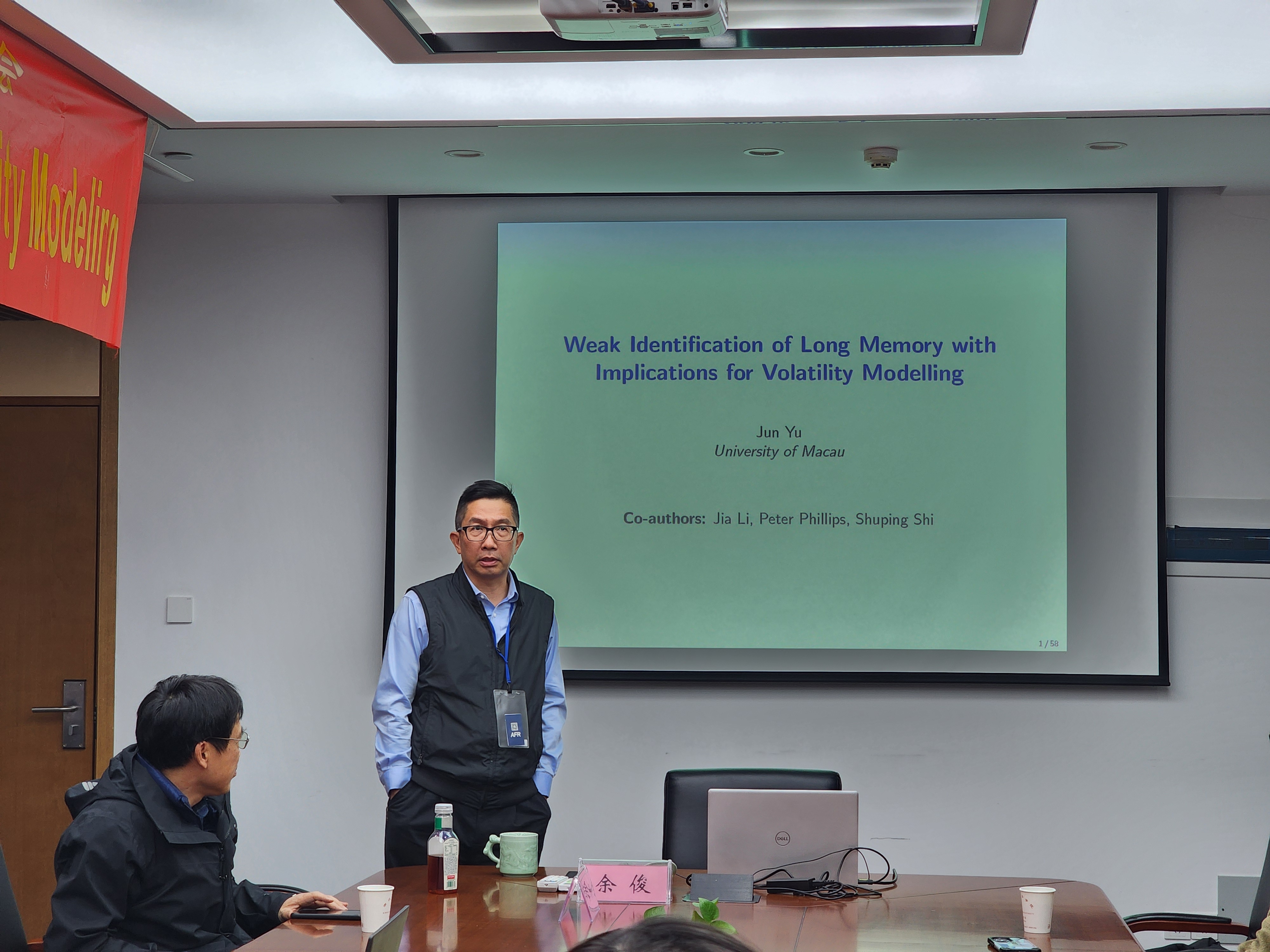 陈松年教授对余俊教授的到来表示热烈欢迎和衷心感谢。余俊教授现任澳门大学工商管理学院院长、澳门大学发展基金会金融与经济讲座教授。余俊教授先后在Review of Financial Studies,Journal of Econometrics,Management Science,International Economic Review等国际学术顶级期刊发表了90多篇文章。他发表的关于资产泡沫检验方法、估计泡沫发生时间和危机发生时间的文章,开创了金融资产和房地产泡沫计量分析的新研究领域。余俊教授同时担任国际权威期刊Journal of Econometrics,Econometric Theory, Journal of Financial Econometrics的副主编。余俊教授还是国际金融计量学会创会会士,也是Fellow of The Journal of Econometrics。
