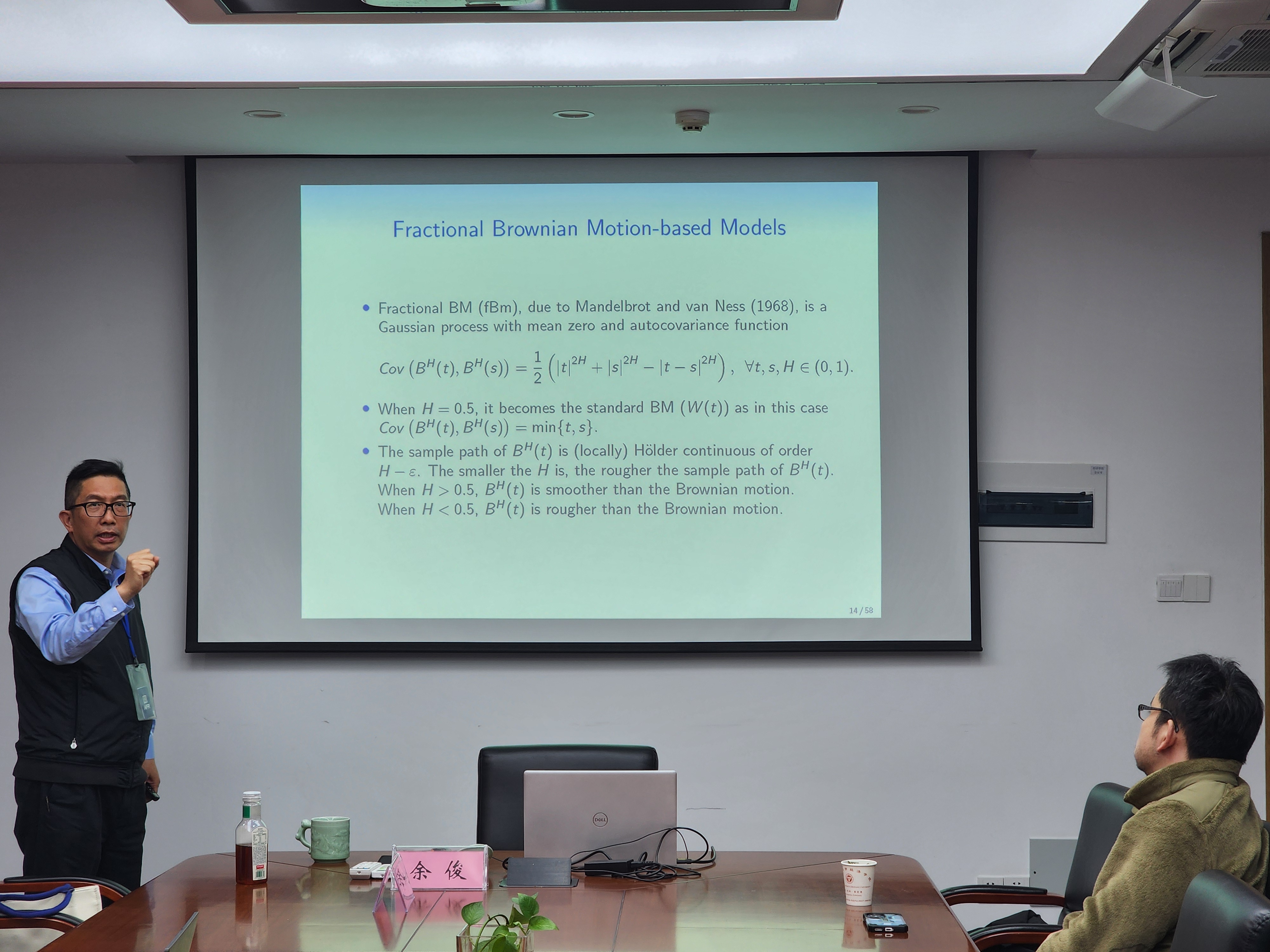 余俊教授对威尼斯144777欢迎您的热情邀请表示感谢。余俊老师首先介绍了波动率的长记忆性这一特点,然后引入了文献中用于波动率长记忆性建模的两种常见模型:ARFIMA模型与分数布朗运动模型。余俊教授对两类模型的特点与估计方法进行了详细介绍,并且指出两种模型在一定条件下是渐近等价的关系,能够通过一些参数之间的数量关系联系起来。