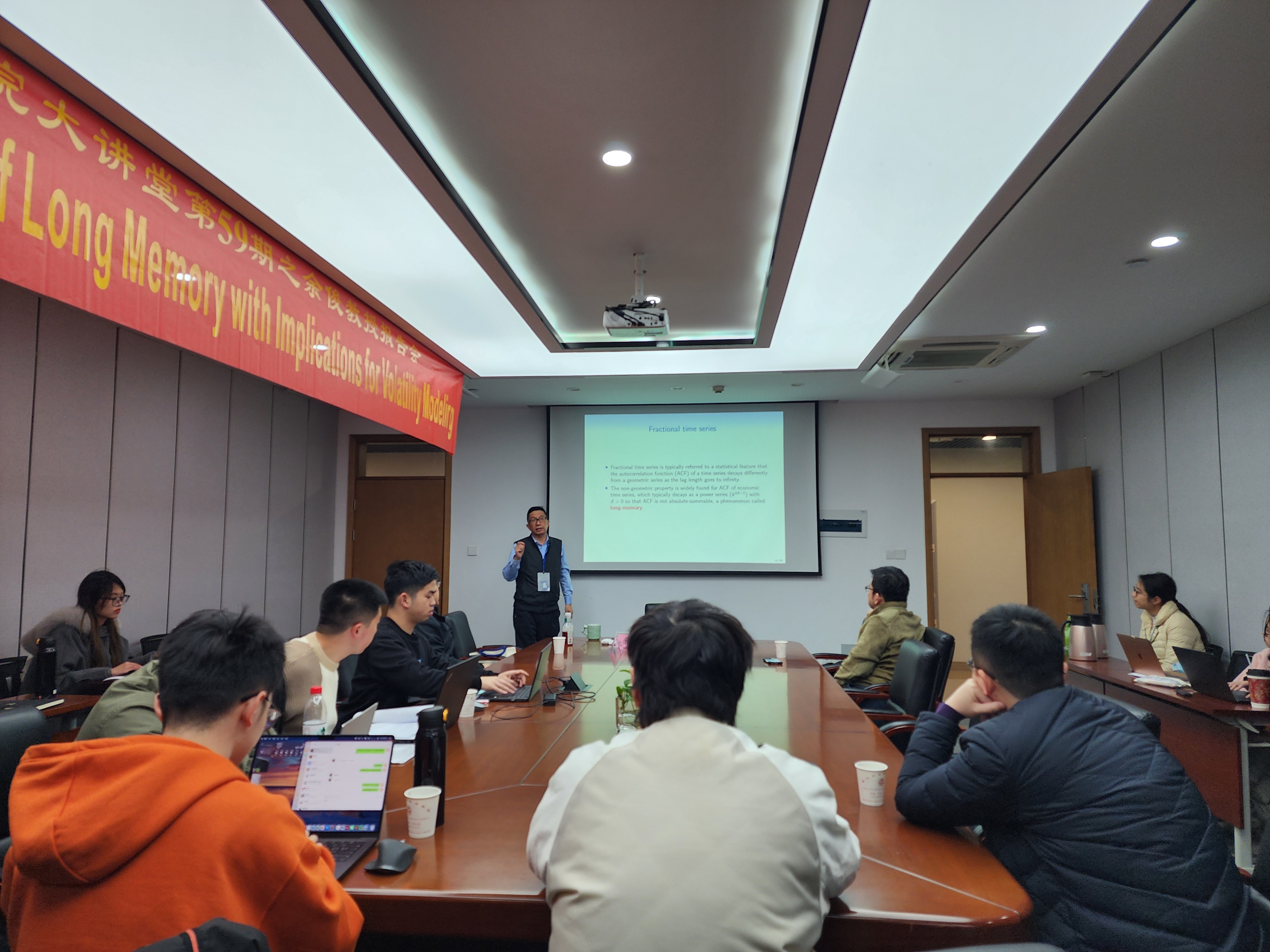 在交流环节,余俊教授与老师同学们就长记忆模型的实证应用、未来相关的研究展望等问题进行了交流,报告会在热烈的掌声中圆满结束。