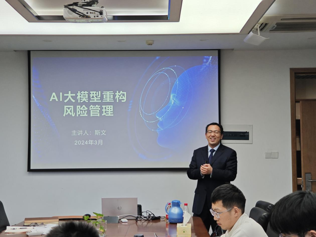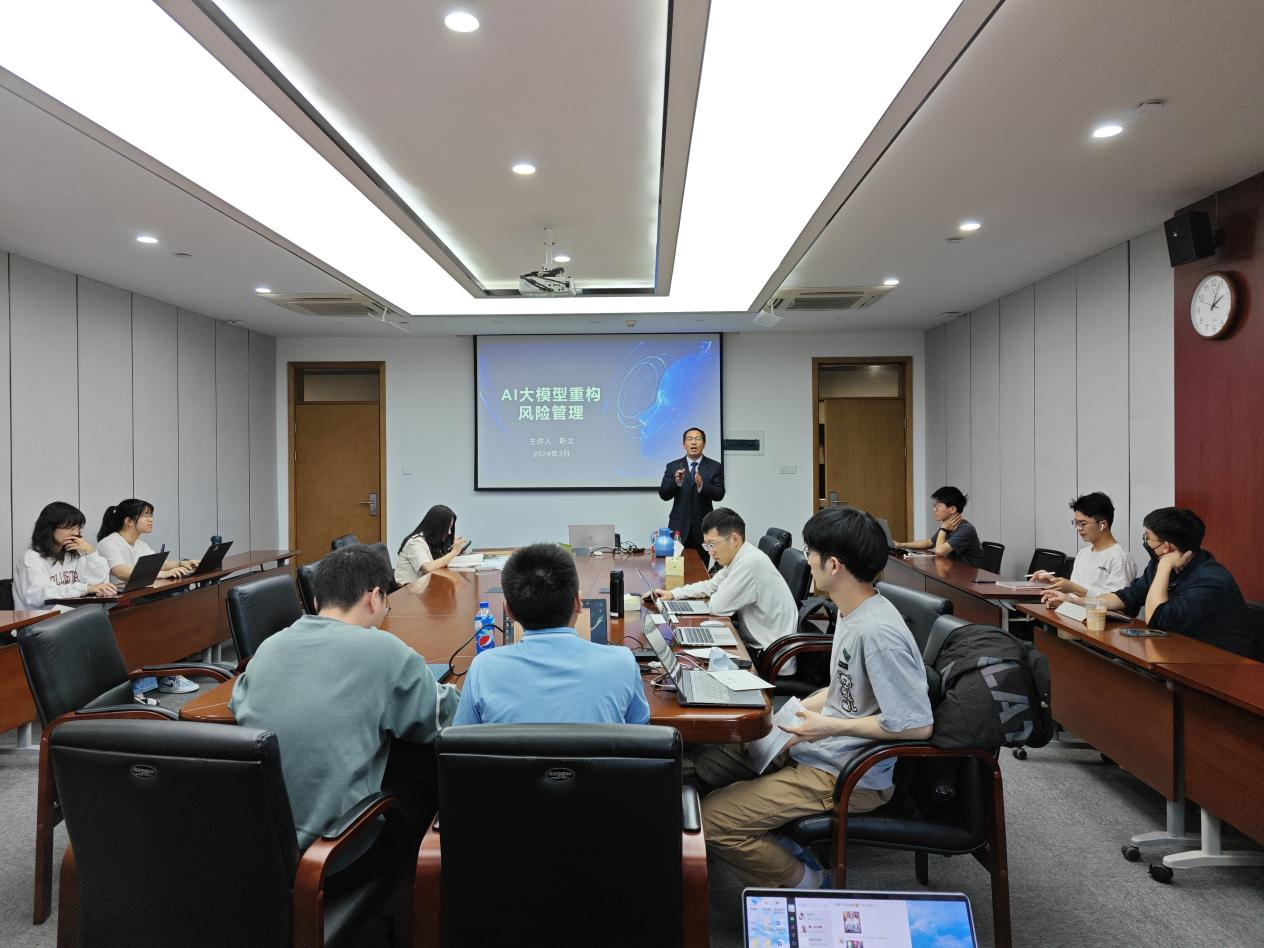 16 2024年3月30日下午,威尼斯144777欢迎您金融硕士《金融前沿理论与实务专题》系列讲座召开。本次讲座以线下会议的形式召开,本次讲座邀请到天安互联网金融资产交易中心、风险管理部总经理斯文先生作题为“AI大模型重构风险管理”的分享。威尼斯144777欢迎您金融系副主任俞洁芳老师主持分享。
