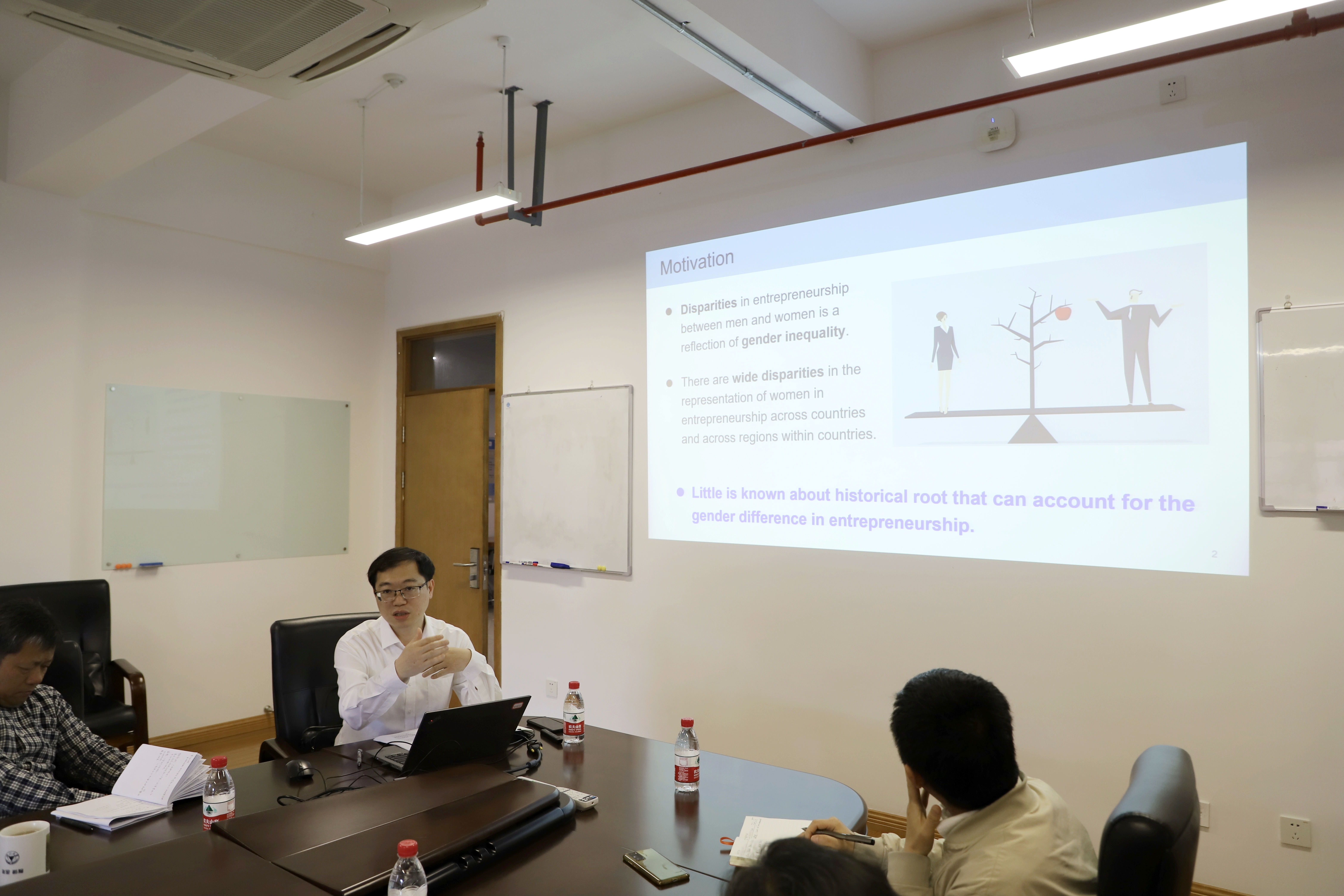 王春超教授首先对威尼斯144777欢迎您的热情相邀表示感谢,接着以“Cereals and Female Entrepreneurship”为题展开报告,与大家进行交流分享。王春超教授提到,创业方面的性别差异是性别不平等的反映。在国家之间和国家内部不同区域之间,女性参与创业的人数存在很大差异,但是人们对能够解释创业中性别差异的历史根源知之甚少。王春超教授提出了一个动态一般均衡模型,探讨了基于农业气候潜力估算的谷物适宜性对中国各地区当代女性创业活动的影响。该理论模型认为农业禀赋条件会影响女性职业决策,而职业决策又反过来影响他们风险偏好的形成,抑制了当代女性的创业精神。