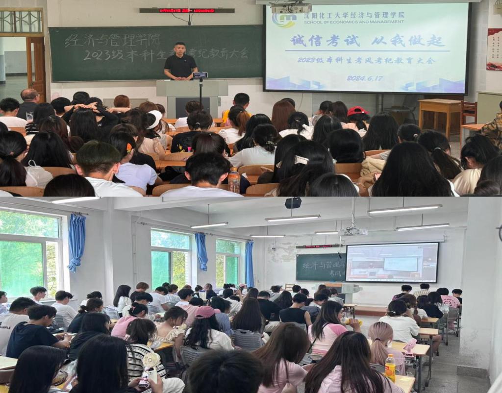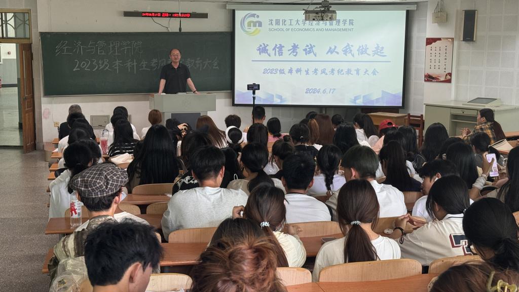 为进一步加强考风考纪教育,深入推进beat365官网学风建设工作,倡导“严肃考风考纪、弘扬优良学风、文明诚信应考”,增强同学们的诚信考试意识,保证考试的公正性,端正同学们的学习和考试态度。6月17日下午,“诚信考试,从我做起”2023级本科生考风考纪教育大会在通明楼232、213教室举行,大会由2023级辅导员王怀老师主持,beat365正版唯一官网党委书记李丙文主讲,2023级全体学生参会。