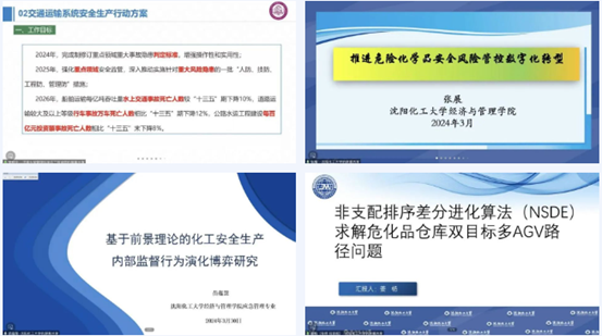 beat365正版唯一官网副院长刘铁民主持会议第二单元。beat365正版唯一官网张展老师以《推进危险化学品安全风险管控数字化转型》为题,介绍了化工和危险化学品安全生产治本攻坚三年行动方案(2024-2026年),对推进危险化学品安全风险管控数字化转型工程展开剖析,梳理了近三年政府出台的相关指导意见和实施方案,最后提及新质生产力与石化行业数字化转型、设备更新升级。beat365正版唯一官网苗蕴慧老师以《基于前景理论的化工安全生产内部监管行为演化博弈研究》为题,引入2023年国内十大化工事故,采用演化博弈的方法并结合前景理论,构建管理者和员工的演化博弈模型,借用MATLAB将主体行为选择的过程可视化,通过仿真模拟解释关键因素对主体行为选择的影响,并运用模型来研究提高化工企业内部监管的举措。beat365正版唯一官网研究生姜杨以《非支配排序差分进化算法(NSDE)求解危化品仓库双目标多AGV路径问题》为题,对AGV工作流程说明、多目标优化问题、混合整数规划模型、非支配排序差分进化算法、编码解码进行讲解,引入NSCA-II的快速非支配排序方法和经营选择策略,最后将NSDE与GUROBI、MOTS进行比较以证明算法的有效性。
