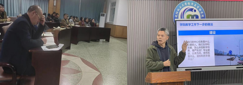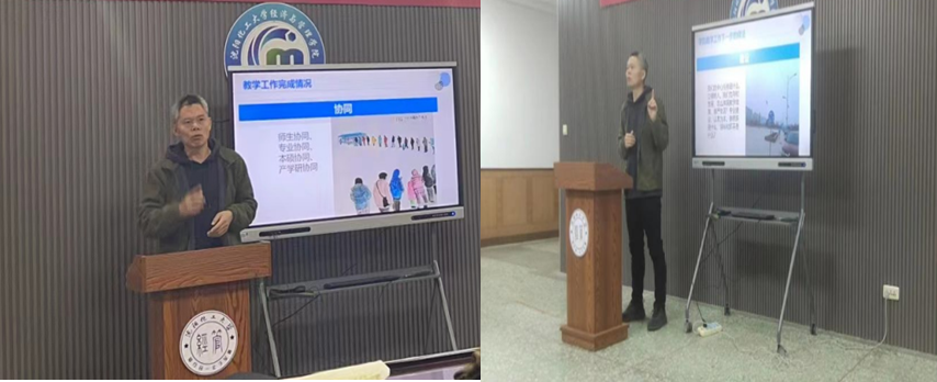 刘满福副院长要求,学院要进一步规范教学管理,严格遵守教学规章制度,规范教学行为,加强教学督导和评估,完善教学质量保障体系;要进一步建设特色专业,努力提高教师队伍的素质和教学能力,引进优秀的外聘教师,开展教师培训和学术交流活动,举办学术讲座和课程研讨会,为学生提供更好的学习资源和环境,推进学科创新;要进一步创新协同育人模式,强化企业与学院的合作,鼓励教师开展科研项目,积极参与教学团队建设活动,通过跨学科合作和实践教学,为学生提供实际操作的机会,培养学生的综合能力和创新精神。