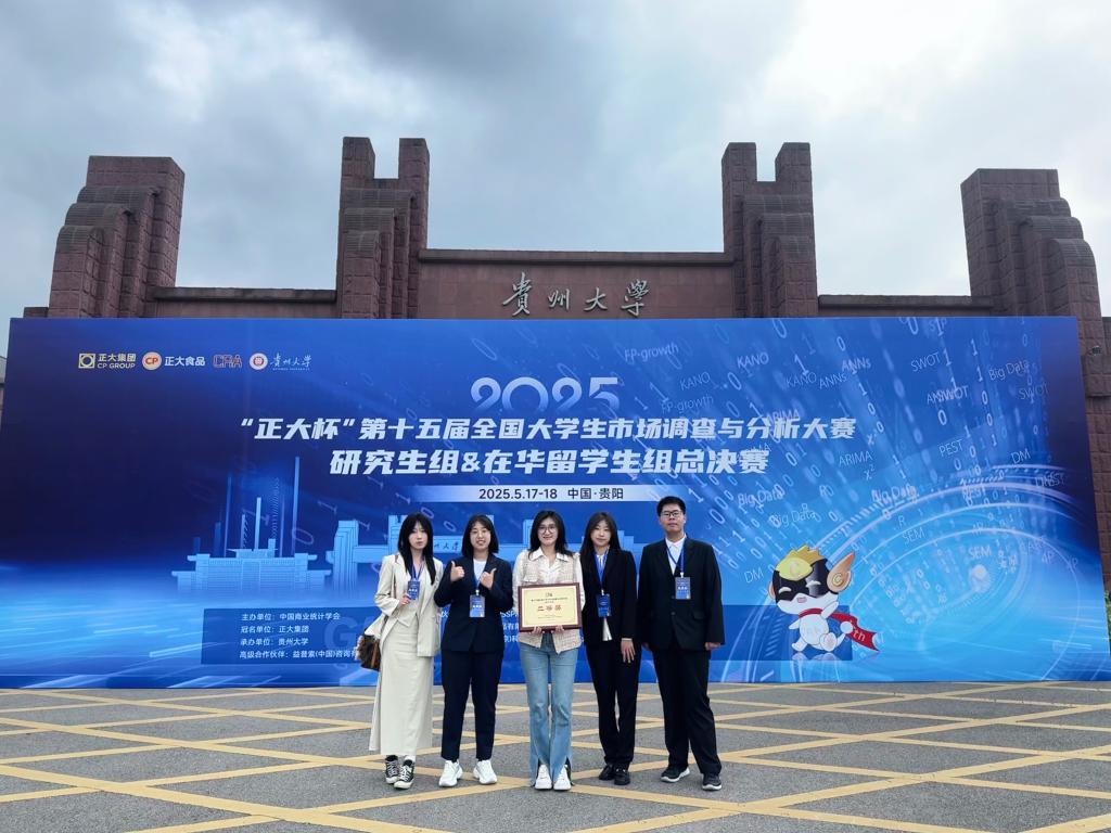 近日,第十五届全国大学生市场调查与分析大赛研究生组及在华留学生组总决赛于贵州圆满收官。作为国内市场营销与统计学领域的顶级赛事,本次大赛吸引了全国1184所高校、超34万名学子踊跃参与,其中研究生与留学生赛道汇聚589所高校同台竞技。在这场高规格赛事中,我校beat365正版唯一官网参赛团队凭借深厚的专业功底与卓越的协作能力,一举揽获国家级二等奖1项、省级一等奖1项、二等奖2项、三等奖4项,展现出强劲的学科实力。