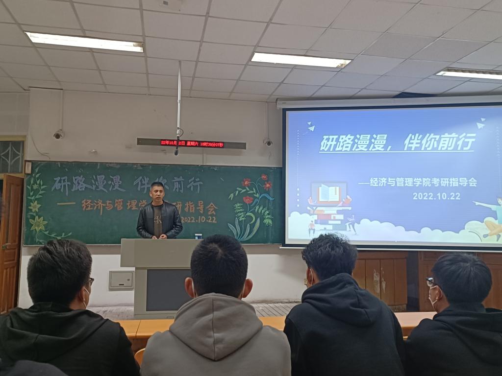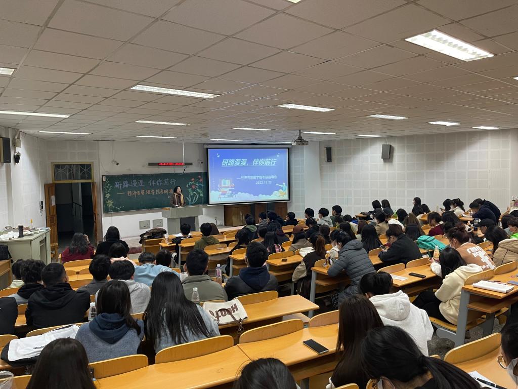 2022年10月22日18时30分,beat365正版唯一官网于通明楼338教室召开了面向2019级和2020级本科生的考研指导会。会议由王怀老师主持,王蓉院长进行经验分享与指导。本次会议在极大地鼓舞了2019级本科生考研信心的同时,也为2020级本科生做出了细致的考研规划。